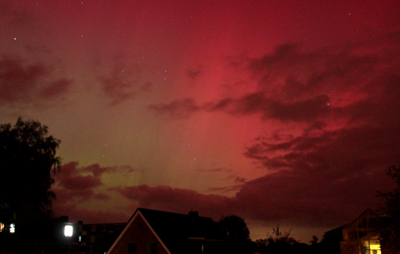 Moin Positive Sichtung auch aus Bremervörde. Beobachtungszeit: 21:30-23:30 Uhr Mesz. Fast von Beginn an durchgehend Aktivität. Anfänglich nur fotografisch ein leichtes Glimmen in grün und violett. Deutlich visuell mit schwach wahrnehmbarer Färbung dann während des kurzen Substorms gegen 22:20 Mesz. ...