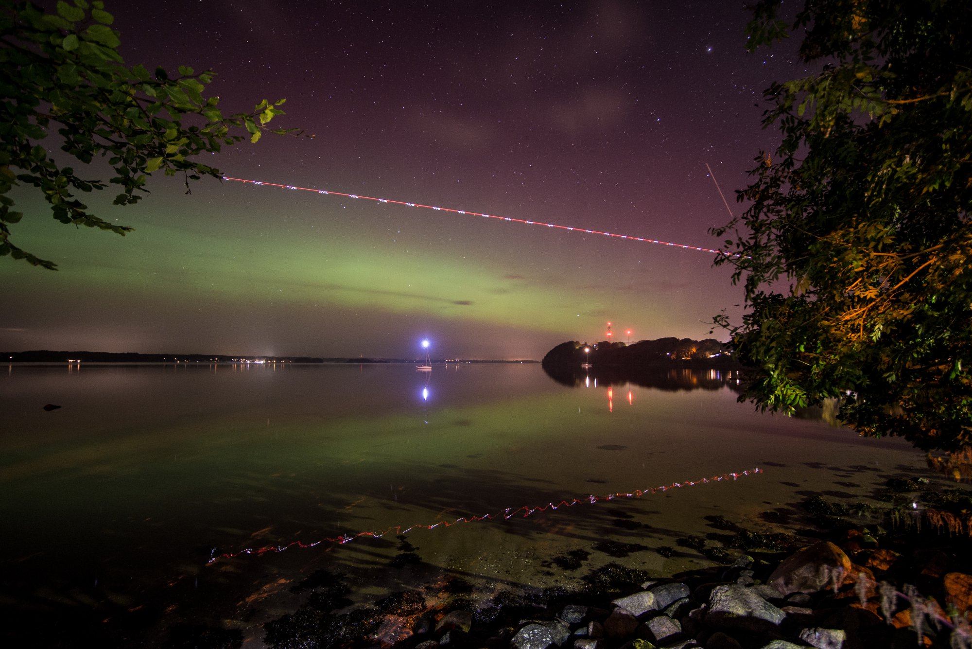 Flensburg/Langballigholz, visuell leicht grüner horizont, fotografisch schönes grün am Horizont, einzelne Beamer, Beobachtungszeitraum 20:30-23:00 Mesz