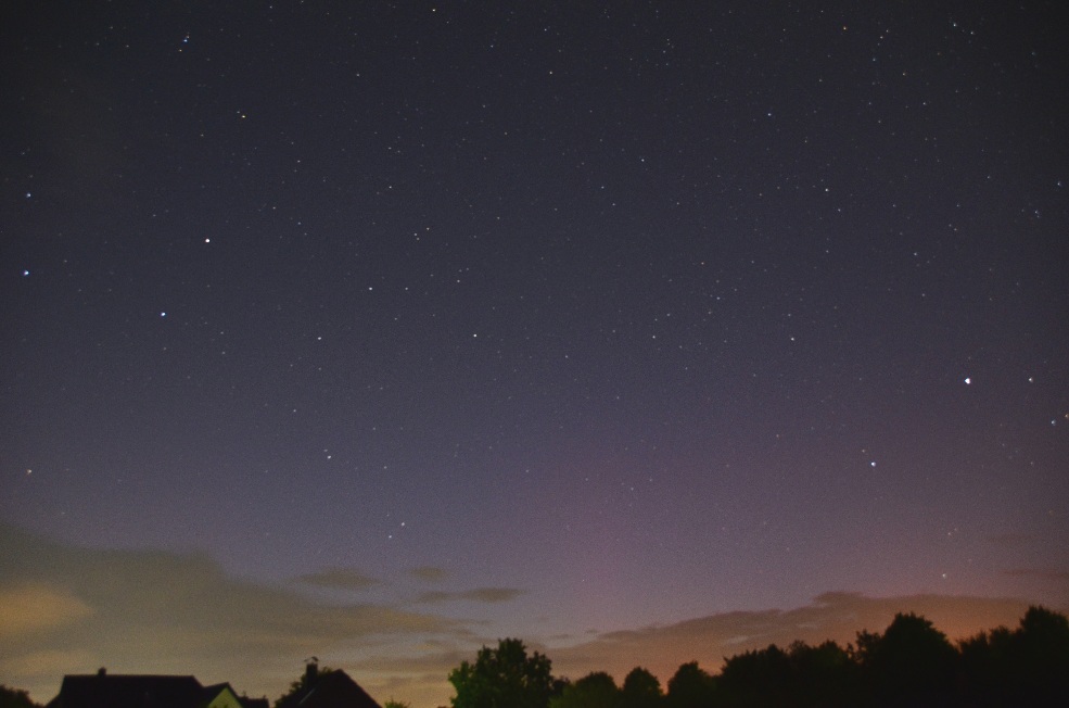 Gerade kann ich Polarlichter über Flensburg fotografieren. Es ist rein fotografisches Polarlicht mit Beamern seit ca 22.05 Uhr MESZ.