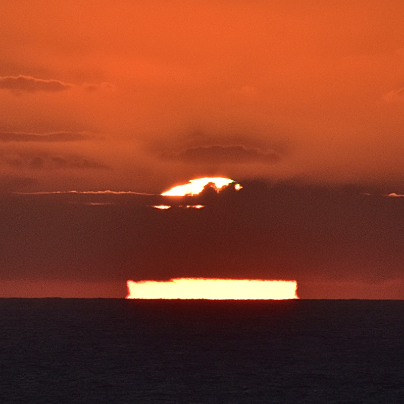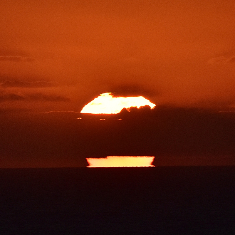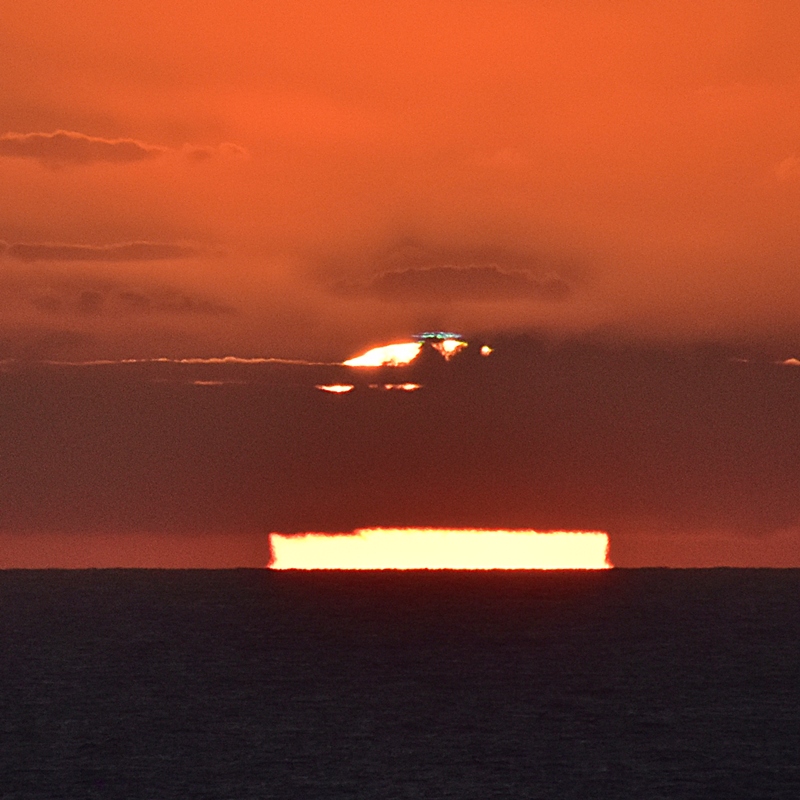 2. Teil des 26. Dezember. Es blieb nur ein schmaler freier Streifen in Richtung Sonnenuntergang d.jpg Das Warten auf das Verschwinden der Sonne unter den Horizont hat sich gelohnt. Es gab ein grün-blau-lila Leuchten. 3-green.JPG 4-green.JPG 5-green.JPG Schönen letzten Weihnachtsabend wünscht Brigitte