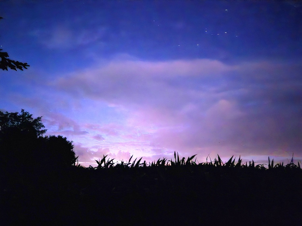 Es ging ja im Laufe des Abends noch weiter ... ich habe nochmal zwischen ca. 20:00 h und 00:50 h mit meinem Samsung Galaxy S24 fotografiert. Überwiegend war hier in Jeersdorf grünes Polarlicht zu sehen, dazu blasses rotes. Himmelsrichtung: von Nordwest bis Nordost. Freie Sicht ist immer NNO überm Je...