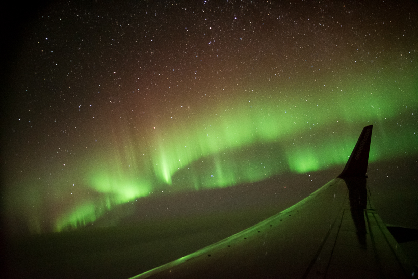 http://flux.phys.uit.no/cgi-bin/mkstack ... nor=&Sync=& . Der erste begann, als wir gerade die Shetlands erreicht haben. Darauf hin habe ich den Piloten gebeten, früher als geplant eine Schleife zu fliegen, damit jeder erst einmal PL zu sehen bekommt. Als der Substorm abflaute sind wir weiter Richtung Island geflogen. Aktivität war die ganze Zeit über sichtbar. In der Nähe von Island haben wir dann wie vorher geplant unsere Schleifen geflogen und schließlich den zweiten Substorm mitgenommen. Den Rückflug haben wir dann etwas weiter nördlich und mit östlicherem Kurs geflogen, sodass wir bis kurz vor Bergen auf der linken Seite noch PL sehen konnten. Insgesamt hatten wir so 3 Stunden PL-Beobachtung, 1 Stunde länger als im formalen Plan vorgesehen. Es war aber von vorneherein klar, dass wir flexibel reagieren würden. Sowohl die Crew als auch die Luftkontrolle in Reykjavík haben toll mitgezogen.