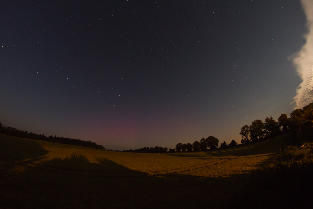 In Kiel/Bülk auch fotografisches Polarlicht mit deutlichen Strahlen, allerdings machen uns etwas dickere Wolken zu schaffen.