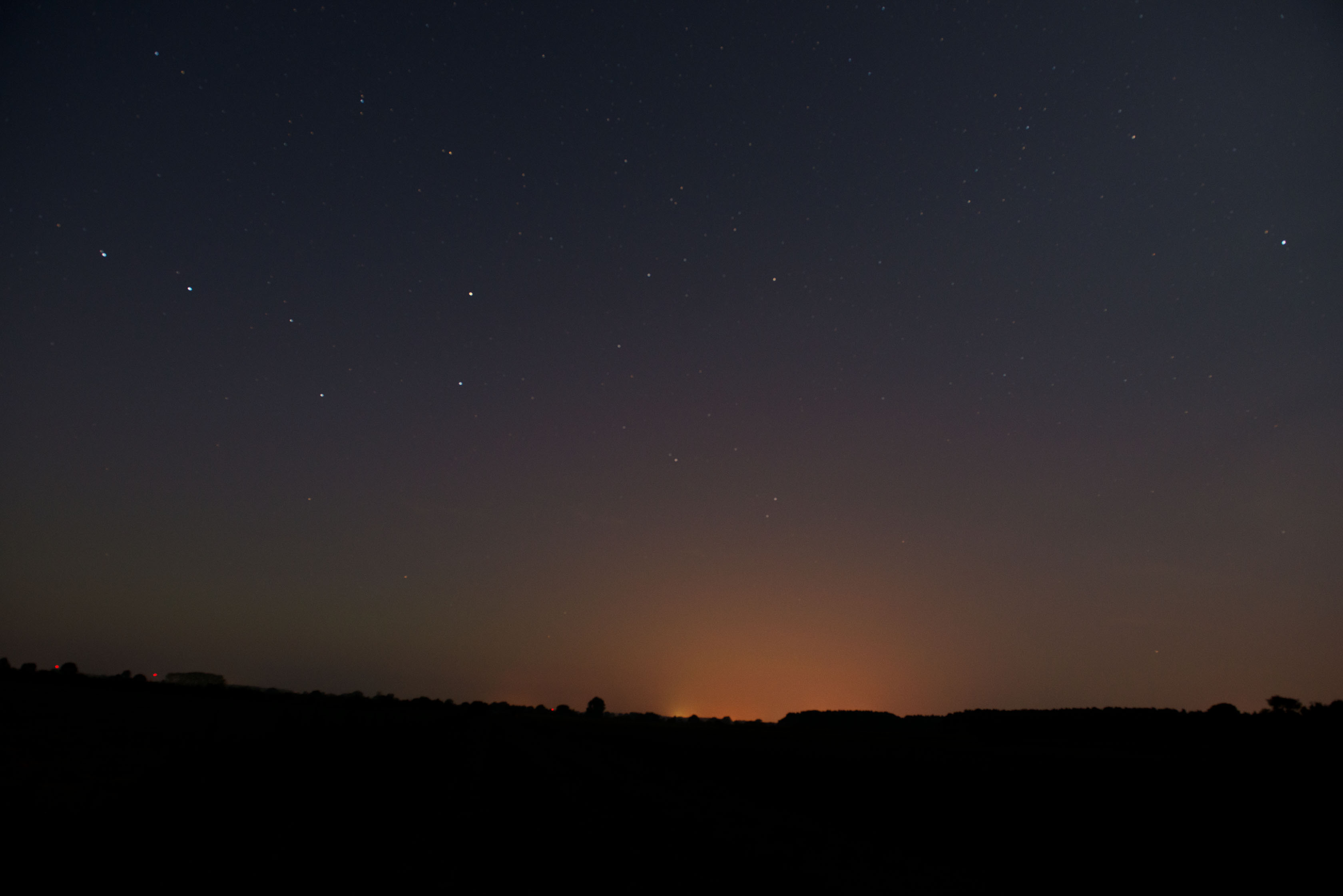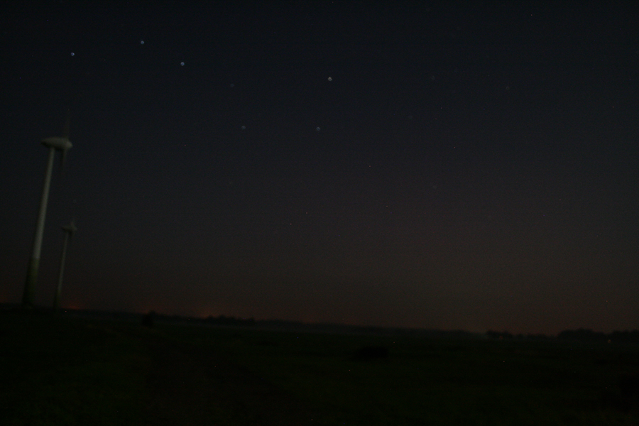 Nördlich Hannover sah das leider nicht so gut aus, obwohl es nur schwach bewölkt war. Ich habe nicht wirklich etwas gesehen, stelle aber mal ein Bild ein, das ihr bitte interpretieren mögt. Leider ist der Standort auch etwas unglücklich, aber der einzige, bei dem ich einen weiten Horizont habe. Da stört das Ortslicht etwas. Dafür war ich aber fast 6 Stunden im Gelände.