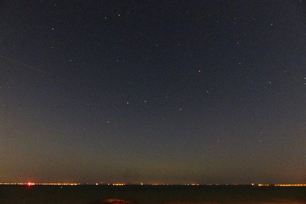 Lange Rede kurzer Sinn, wir sind dann in Timmendorfer Strand geblieben, und die ersten anständigen Fotos entstanden erst um 2 Uhr, also viel zu spät. Und ich fürchte mal, das leicht Grüne am Horizont ist doch eher Lichtverschmutzung, oder was meint Ihr?