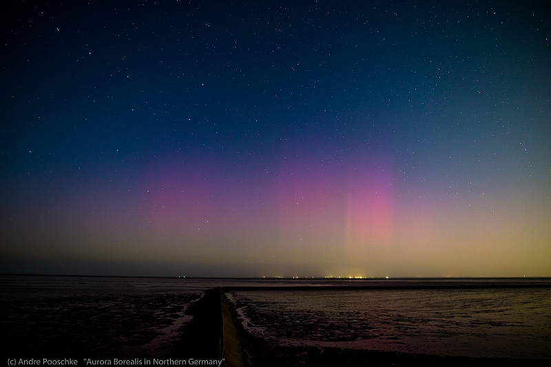 über einen recht langen Zeitraum (23:30 -01:00) am gestrigen Abend war vor St. Peter Ording ein Polarlichtband zu sehen. Teilweise allerdings nur fotografisch sichtbar, am Ende etwas stärker.