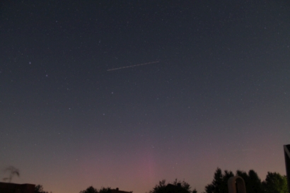 Standpunkt war der Landkreis Rotenburg(Wümme). Polarlicht war nur fotografisch sichtbar. Dunst und Mond haben die Sichtbedingungen erheblich erschwert.
