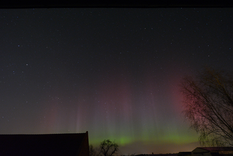 Weitere Versuche zuhause blieben dann ebenfalls erfolglos. Um mögliche Aktivität in der Nacht dann nicht zu verpassen, also der Dachboden-Aufbau. Es gab dann noch mal eine weitere starke Polarlichtphase um Mitternacht MEZ, die ich zum Glück fotografisch dokumentieren konnte – bei weiten nicht so toll wie andere das an dunklen Standorten schafften, aber immerhin.