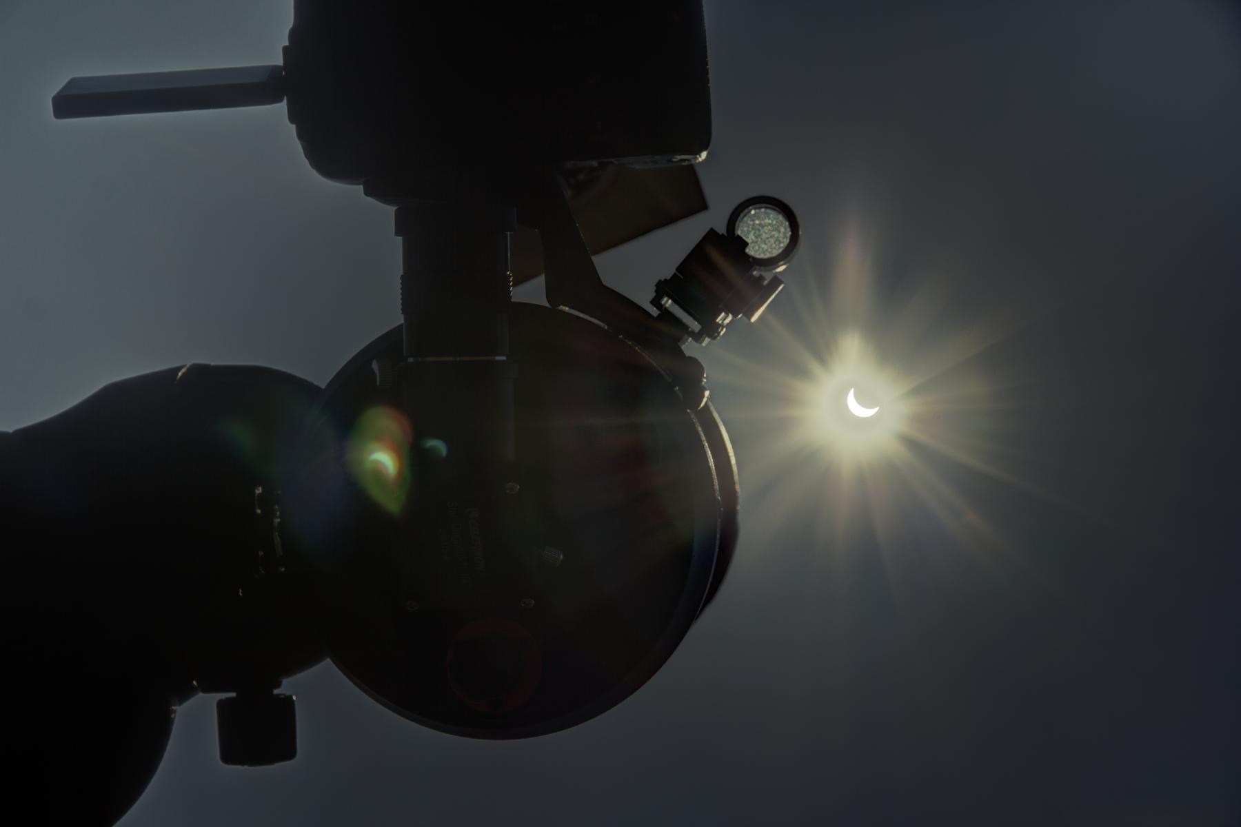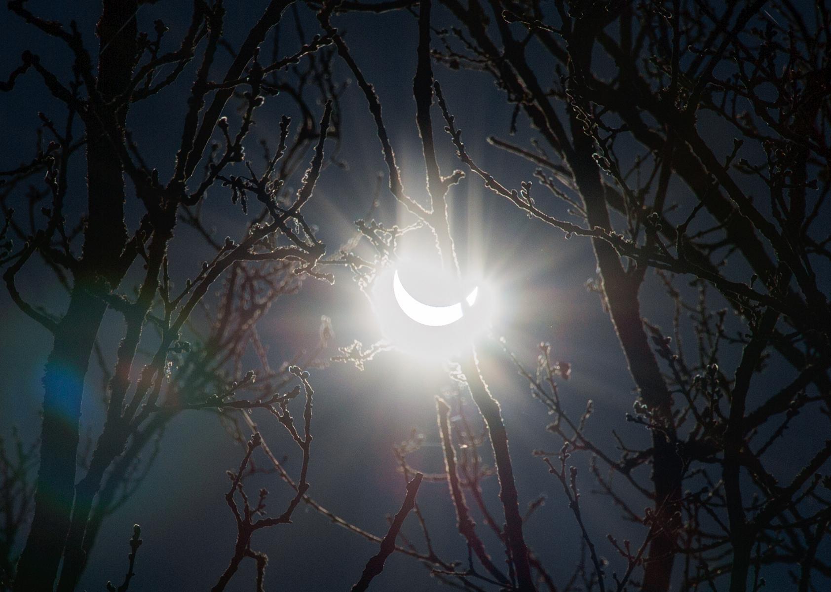 Aber im Satellitenbild ist der Schattenwurf des Mondes schön zu sehen: