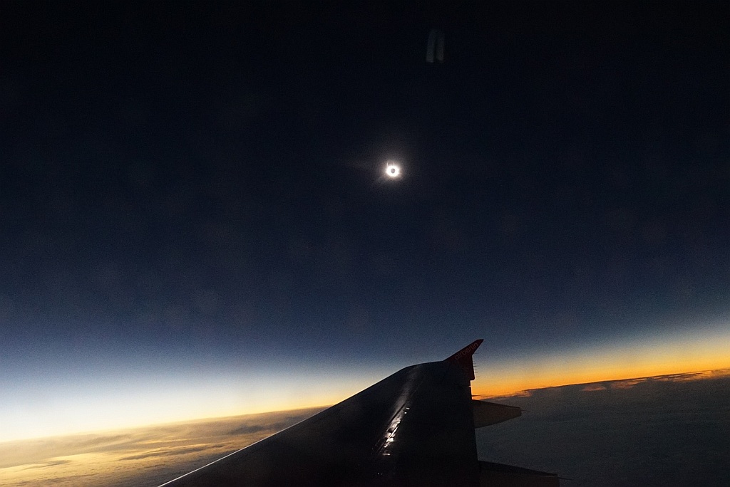 Stefan Schwager, Stefan Plach und ich aus dem Sternwarte Riesa e.V konnten aus dem Flugzeug die totale Sonnenfinsternis beobachten. Ich selber war auch mit dabei gewesen und es war der WAHNSINN!!