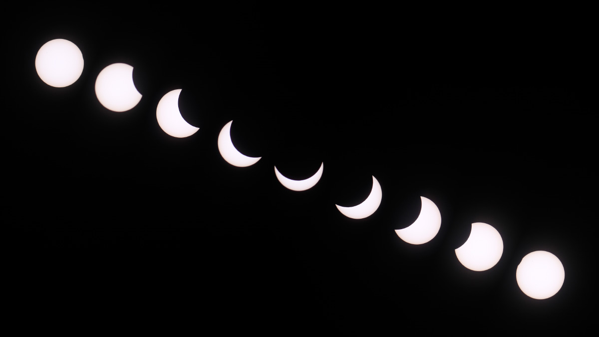 Temperaturrückgang und schärfere Schatten zur Zeit des Maximums waren auch bei uns festzustellen. Zum Glück wurde es nur dunstiger, aber es zog nicht wirklich zu.