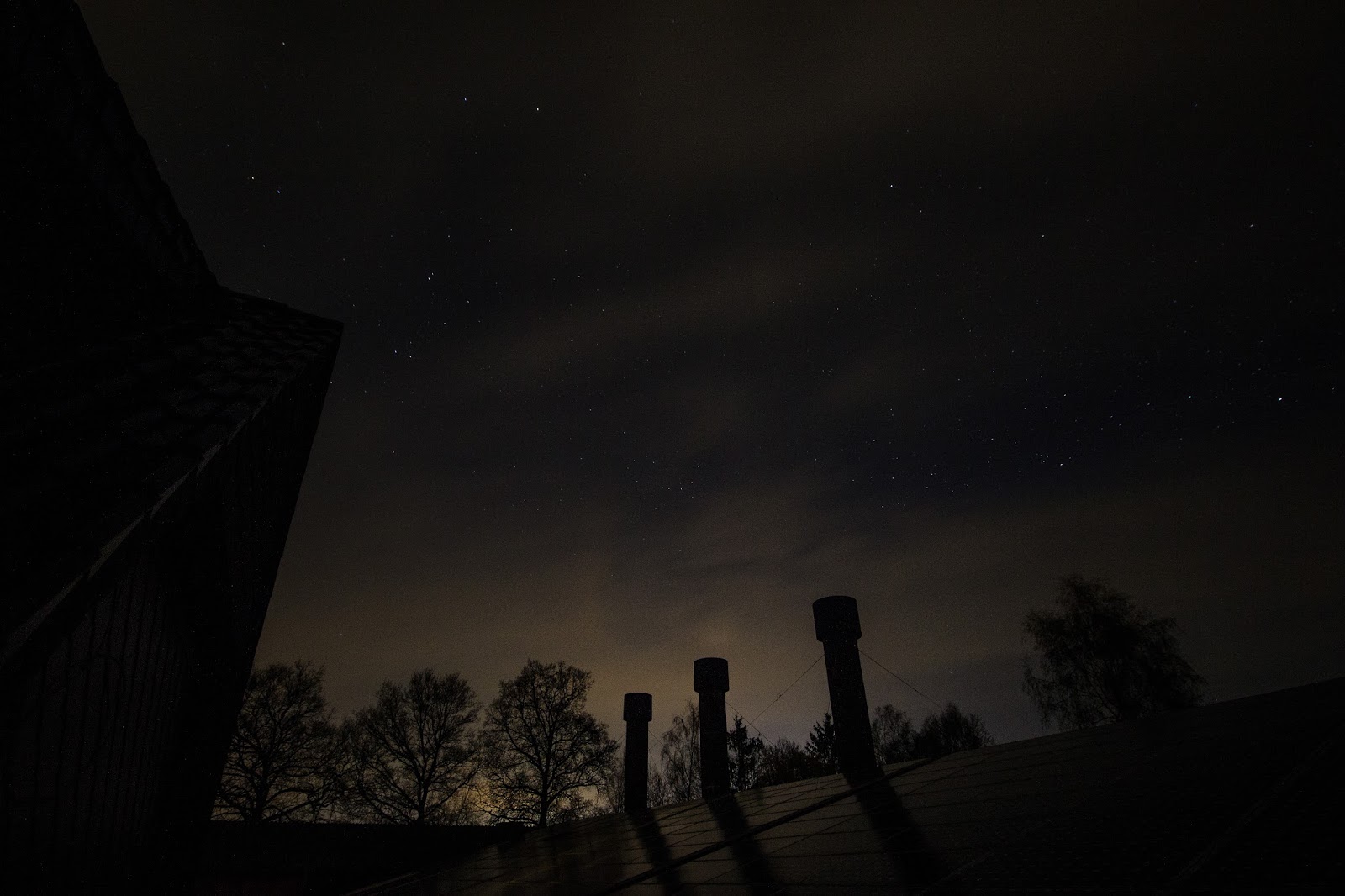 20km nördl. von DD, 01:15: Nachdem fotographisch klar war, wo sich das Polarlicht befindet, möchte ich meinen, ganz ganz schwach auch visuell etwas gesehen zu haben. Die vielen Wolken haben die visuelle Aufklärung heut etwas schwieriger gestaltet...