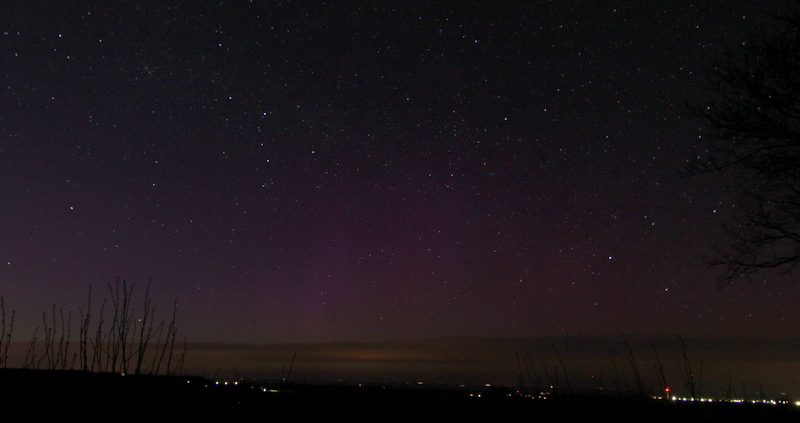 Die hell(st)e Phase kurz nach 1 ging nur ein paar Minuten, aber war sehr ansehnlich. Die Strahlen gingen geschätzt bis etwa 40-45 Grad Höhe und erhellten auch die Landschaft ein wenig.