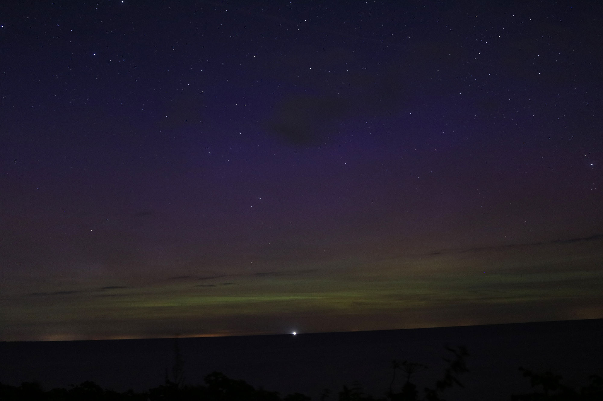 In Habernis ist bisher nur ein schwacher grüner Bogen zu erkennen. Visuell nur eine leichte Aufhellung über dem Horizont.
