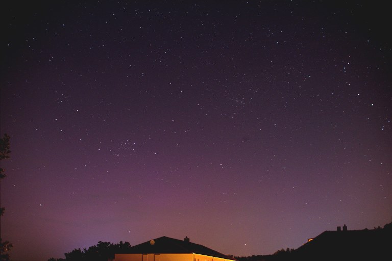 Mögliches violettes Glimmen kann nicht immer von der umgebenden Lichtverschmutzung unterschieden / aufgelöst werden.