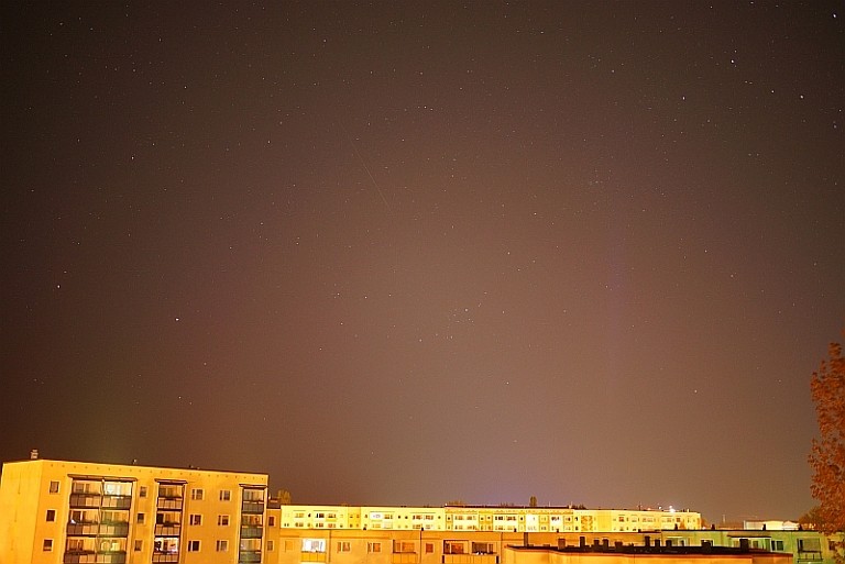 Der Vollständigkeit halber möchte ich auch noch ein Bild von meiner Polarlichtbeobachtung (nur fotografisch) einstellen. Mein Standort war sehr ungünstig in unmittelbarer Nähe zum Zentrum der Lichtverschmutzung im Mühltal, auf einen nahe gelegenen Berg wollte ich nicht mehr fahren - leider.