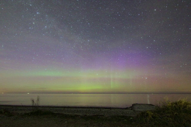 Im Moment ist immer noch etwas da, aber stark abgeflaut. Ab und zu huscht mal noch ein Strählchen über den Horizont, aber im Moment nur fotografisch, zwischenzeitlich auch mal schwach visuell.