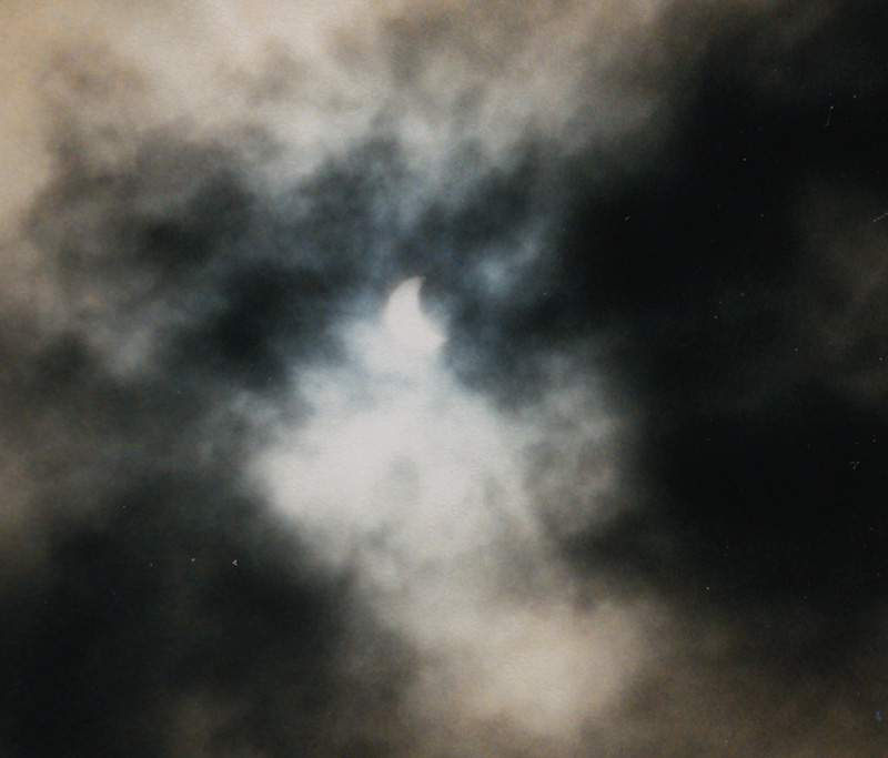 Ein Kassettenrekorder lief mit und wir hatten gutes Wetter bis einige Zeit nach der Totalität, während es von Westen her schon bald gefährlich dunkel zu werden drohte (-nach der Totalität-). Beim Abbauen war ich zu optimistisch, so ist dann doch einiges naß geworden. Das Wichtigste konnte aber trocken verstaut werden.