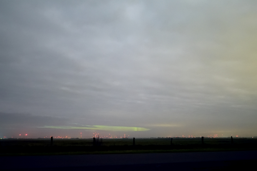Kommentar: wegen der hochnebelartigen Bewölkung war das grüne PL nur in einem schmalen Streifen horizontnah zu sehen