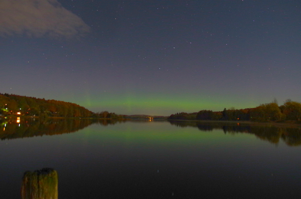 In Eutin zwischen 21.45 und 23.00 MEZ beständig grüner Bogen, zeitweise darüber rötliches glimmen. Ab 22.30 phasenweise leichte Beamer in grün. Zwischen 22.30 und 23.00 schwach visuelle Aufhellung, sonst nur fotografisch.