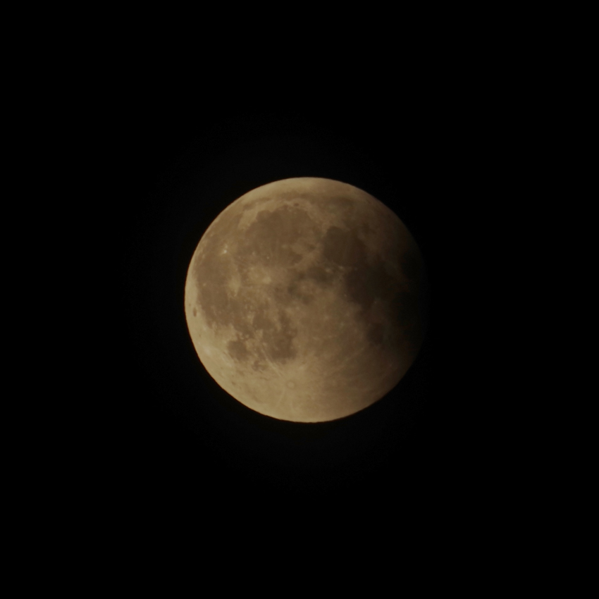Abb. 6: Mit zunehmender Dunkelheit erscheint der Rote Mond immer plastischer (22:32 MESZ).
