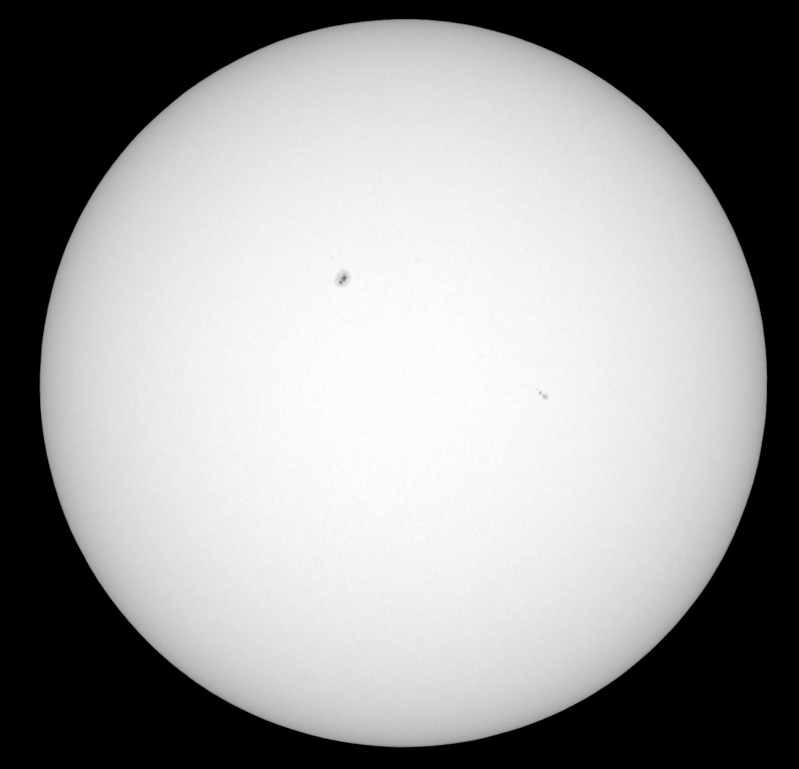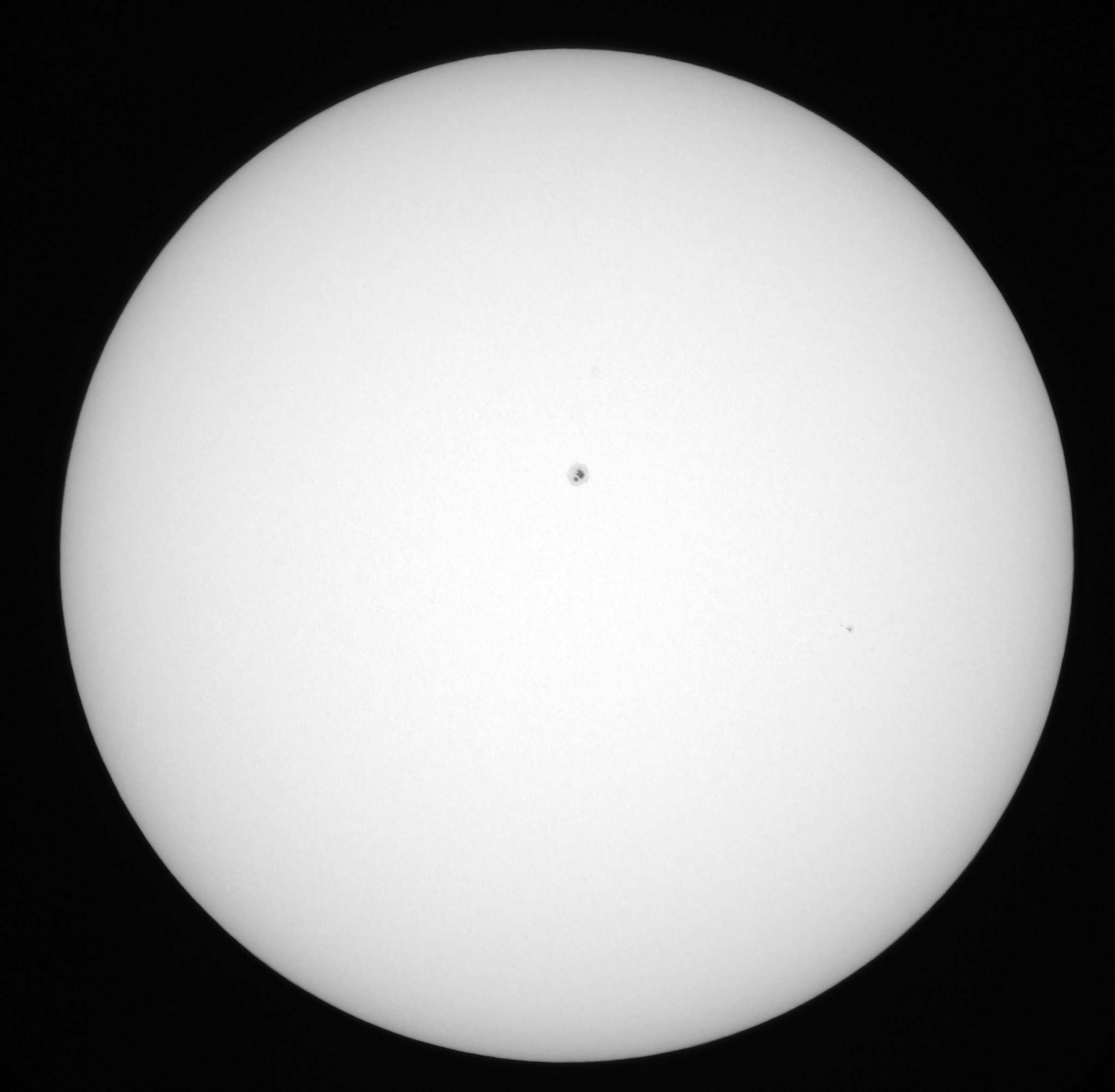 Aufnahme mit Pentax 125 SDP Refraktor, f 800 mm + Baader Hyperion 2,25 x Barlow, Glassonnenfilter Dichte 5, ISO 160 + 1/30"