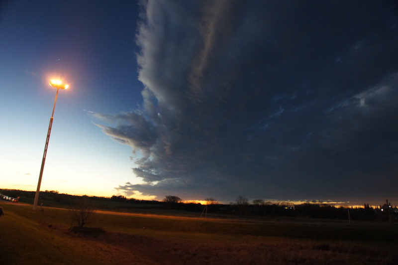 Über Tage hinweg war die Wetterprognose sehr gut und stabil: Wolkenloser Himmel am 2. Juli. Das änderte sich erst am Abend des 1. Juli: plötzlich sollten Wolken vorhanden sein, 50% über Buenos Aires selbst, und bis 80–90% südlich der Stadt. Auf dem Satellitenbild war zu sehen, dass ein recht schmales Wolkenband von West nach Ost driftete und sich dann auflösen sollte, so dass der Himmel gegen Sonnenuntergang wieder vollkommen aufgeklart sein sollte. Soweit die Prognose. Trotz bedeckten Himmels brachen wir am Mittag des 2. Juli nach Lobos auf. Über dem Nordhorizont war bereits der wolkenlose Streifen sichtbar, der sich im Laufe des Nachmittags nach Süden ausdehnen sollte. Alles in bester Ordnung. In Lobos angelangt, war der Streifen im Norden wieder sichtbar: Zumindest die untergehende Sonnensichel war somit sicher. Aber der wolkenlose Streifen im Norden wurde nicht breiter, im Gegenteil: er zog sich ganz allmählich nach Norden zurück. Ich vermutete, dass diese Wolken Richtung Buenos Aires drifteten, und tatsächlich hatte ich nach der Rückkehr erfahren, dass die Totalität in der argentinischen Hauptstadt aufgrund der Wolkendecke nicht beobachtbar war. Dafür klarte der Himmel von Süden her auf. Aber leider nicht schnell genug: Als der Mondschatten uns „überrollte“, war gerade der Bereich, in dem die Sonne stand, von einem dichten Wolkenstreifen bedeckt. Etwa 10 min vor der Totalität wurde der Himmel deutlich dämmerig, die Finsternis war also weit fortgeschritten und die Totalität im Anmarsch. Dass es tatsächlich schon „fortgeschrittene Dämmerung“ war zeigte sich dann unzweifelhaft, als die Straßenlampen angingen.