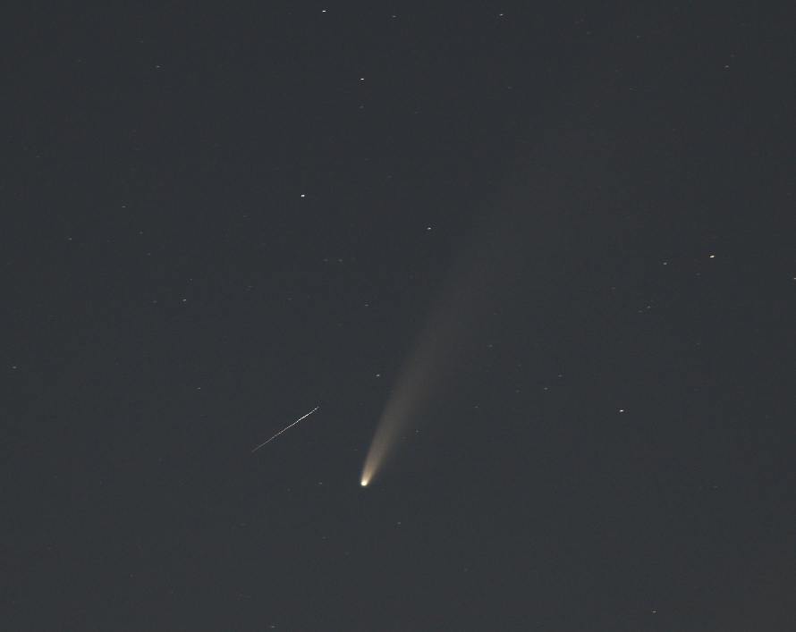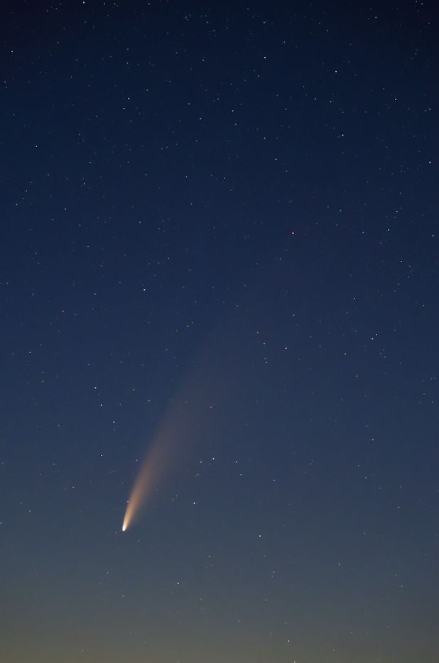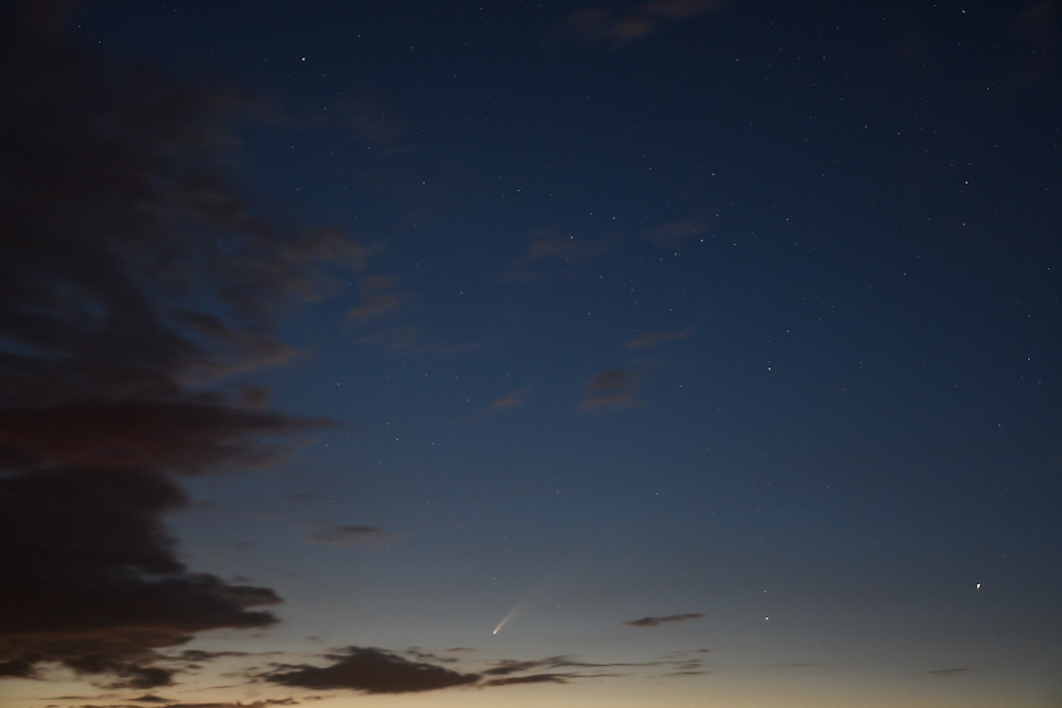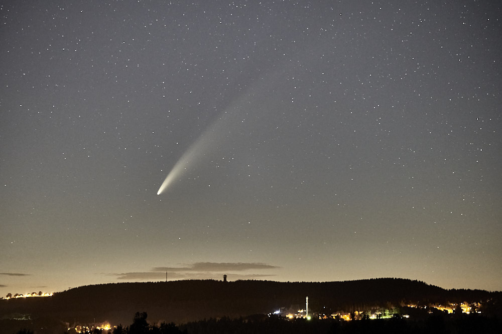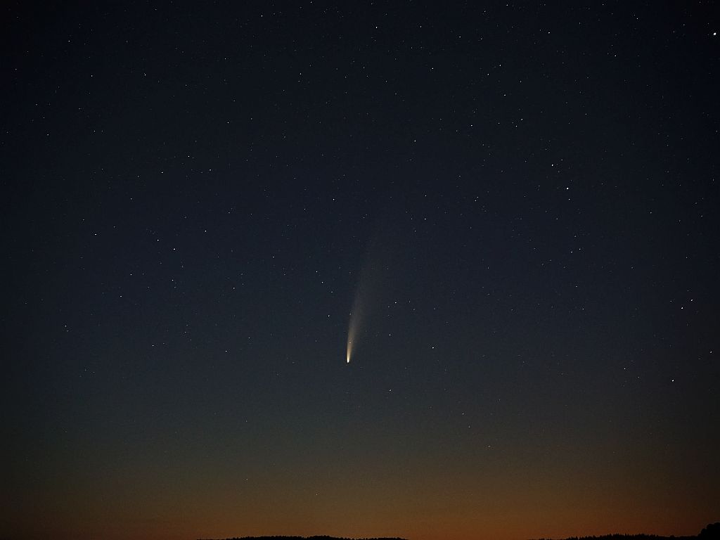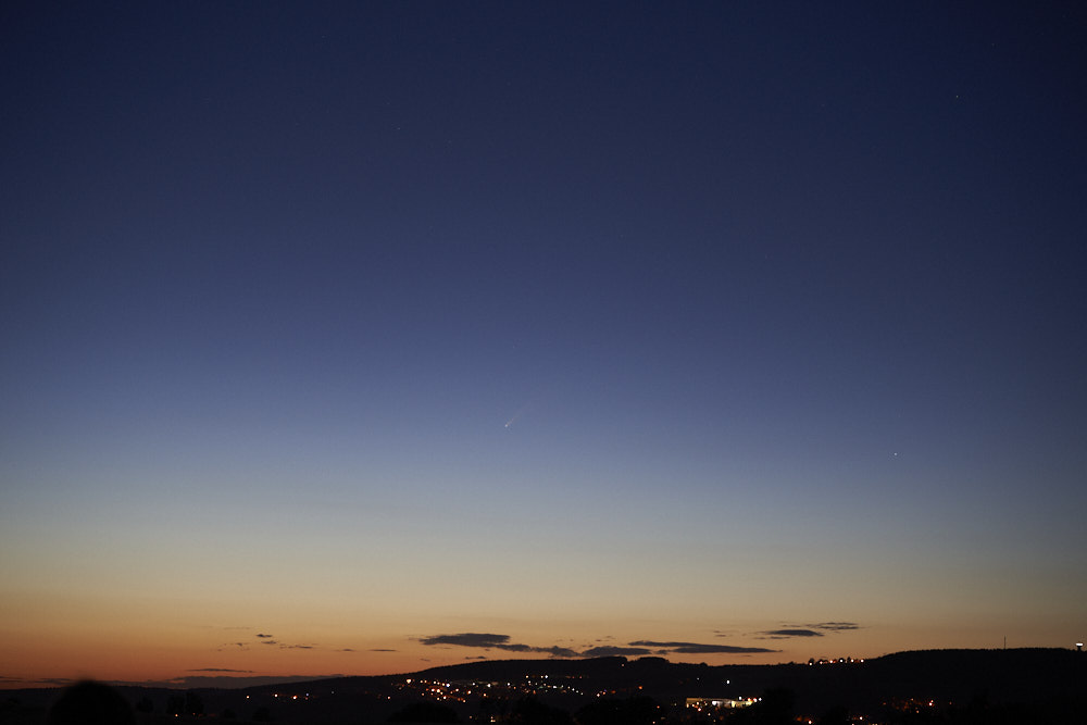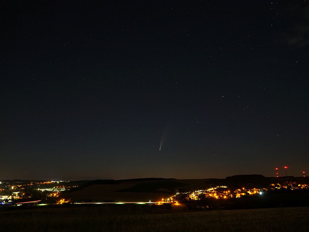 auch am Abendhimmel lässt sich der Komet Neowise gut erkennen. Die Aufnahme habe ich gegen 23:40 Uhr gemacht, Blickrichtung NNW. Sollte es heute Abend aufklaren, werde ich wieder länger aufbleiben.