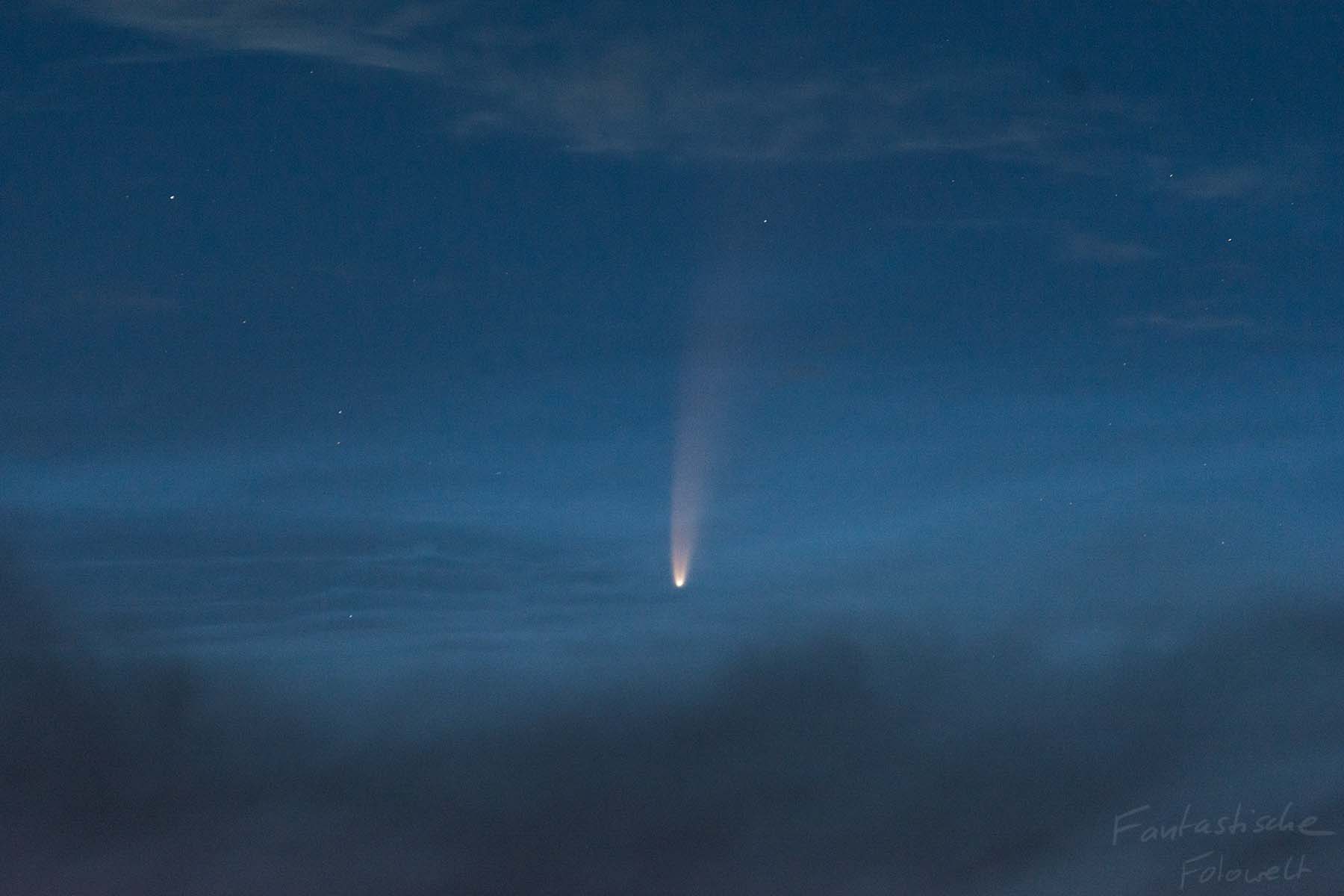 Am Morgen des 10.07.20 gelang mir die erste Beobachtung des Kometen zusammen mit NLCs:
