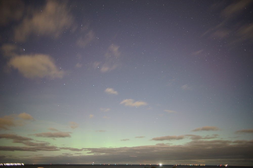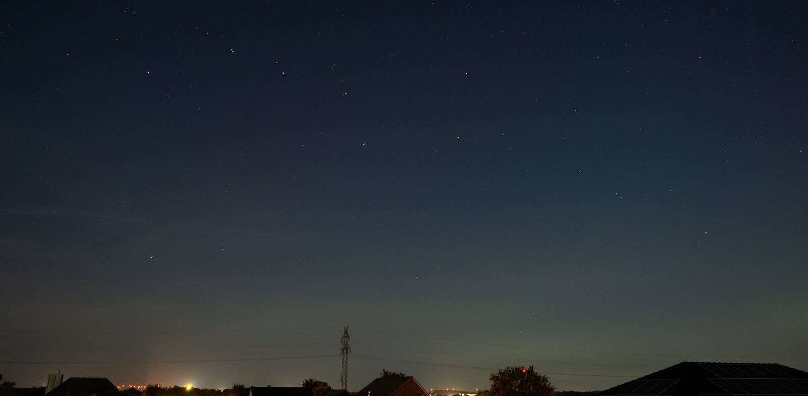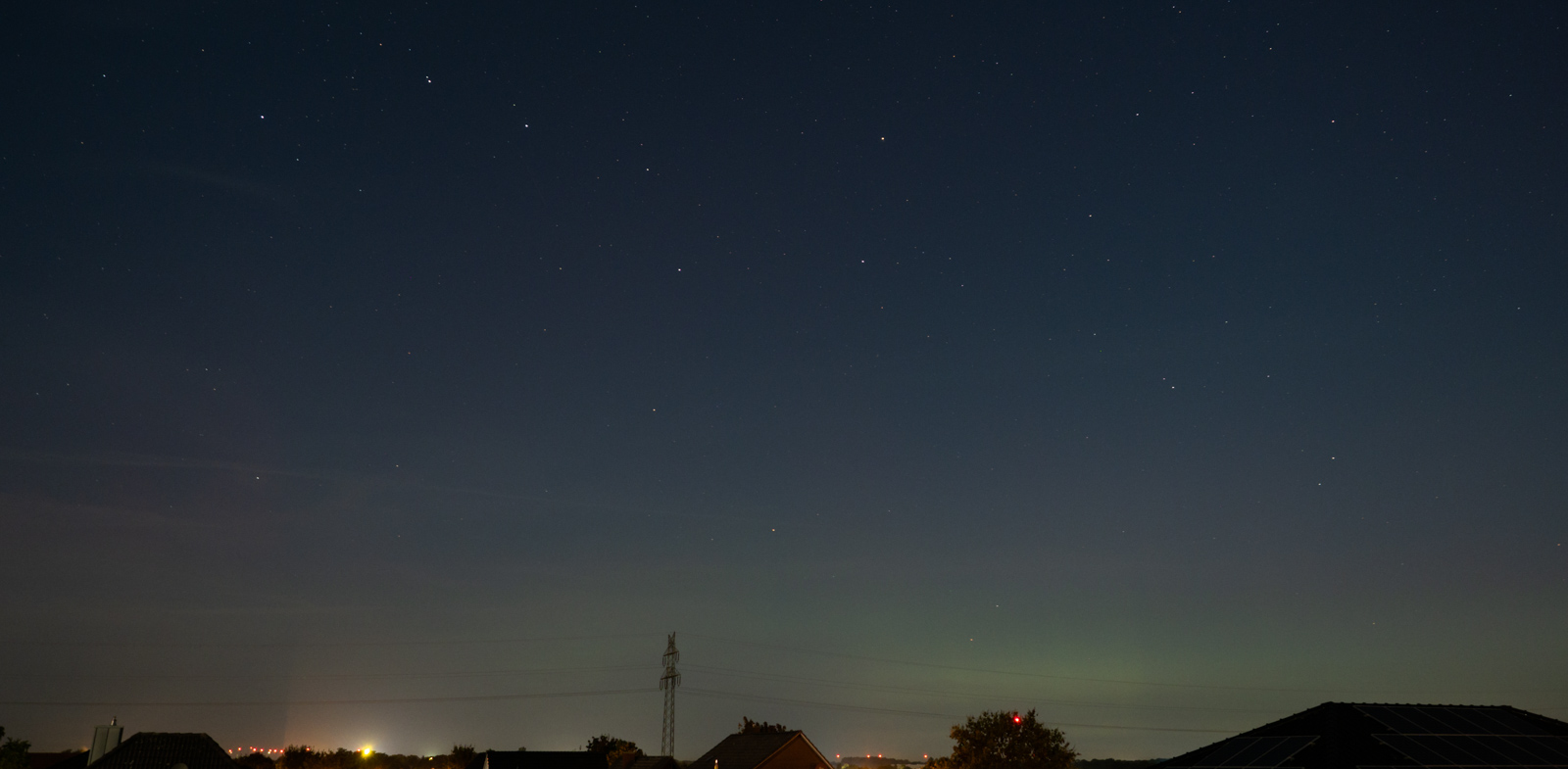 Ich war vergangene Nacht auch unterwegs und bin über die Landesgrenze hinaus ins schöne Niedersachsen gefahren, um es mir mal wieder an meinem favorisierten Beobachtungspunkt gemütlich zu machen. Hier war ich nun schon oft und in der Folge der Meinung, dass sich dieser Spot recht gut für die PL-Beobachtung eignen sollte. Nun kam es, wie es kommen musste: Zur angenommenen Hauptaktitvitätsphase des Polarlichts, hatte ich mit größeren "organisatorischen Problemen" vor Ort zu kämpfen, die wohl hätten vermieden werden können. Trotz allem Ärger, durfte ich heute früh feststellen, dass mein (vor Ort erkannter) Verdacht, rund um 22:10 MESZ, via Nachbetrachtung (und Bildentwicklung) nun zufriedenstellend belegt und als sicherer Nachweis bezeichnet werden kann: