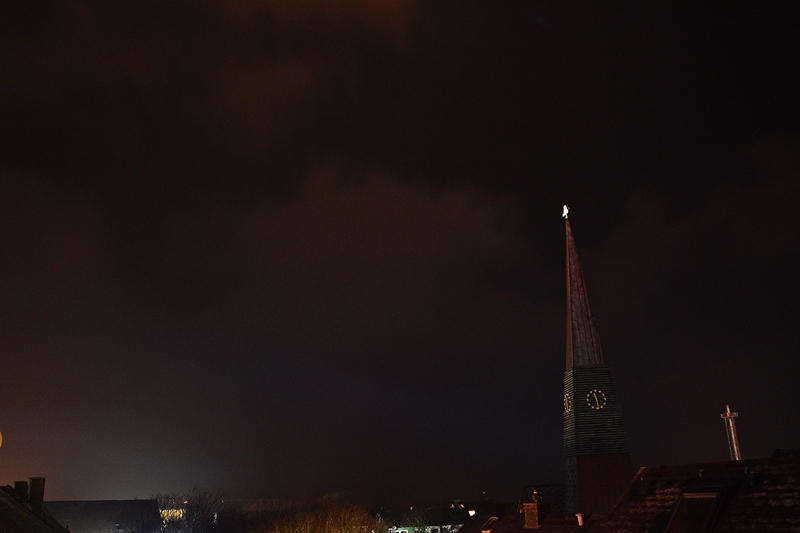 Helligkeit: fotografisch, visuell durch den aufgehellten Himmel nichts zu sehen