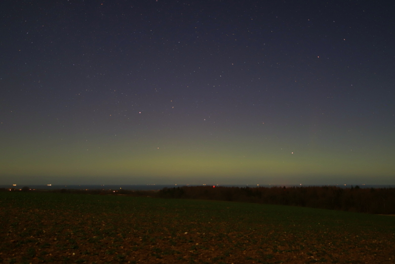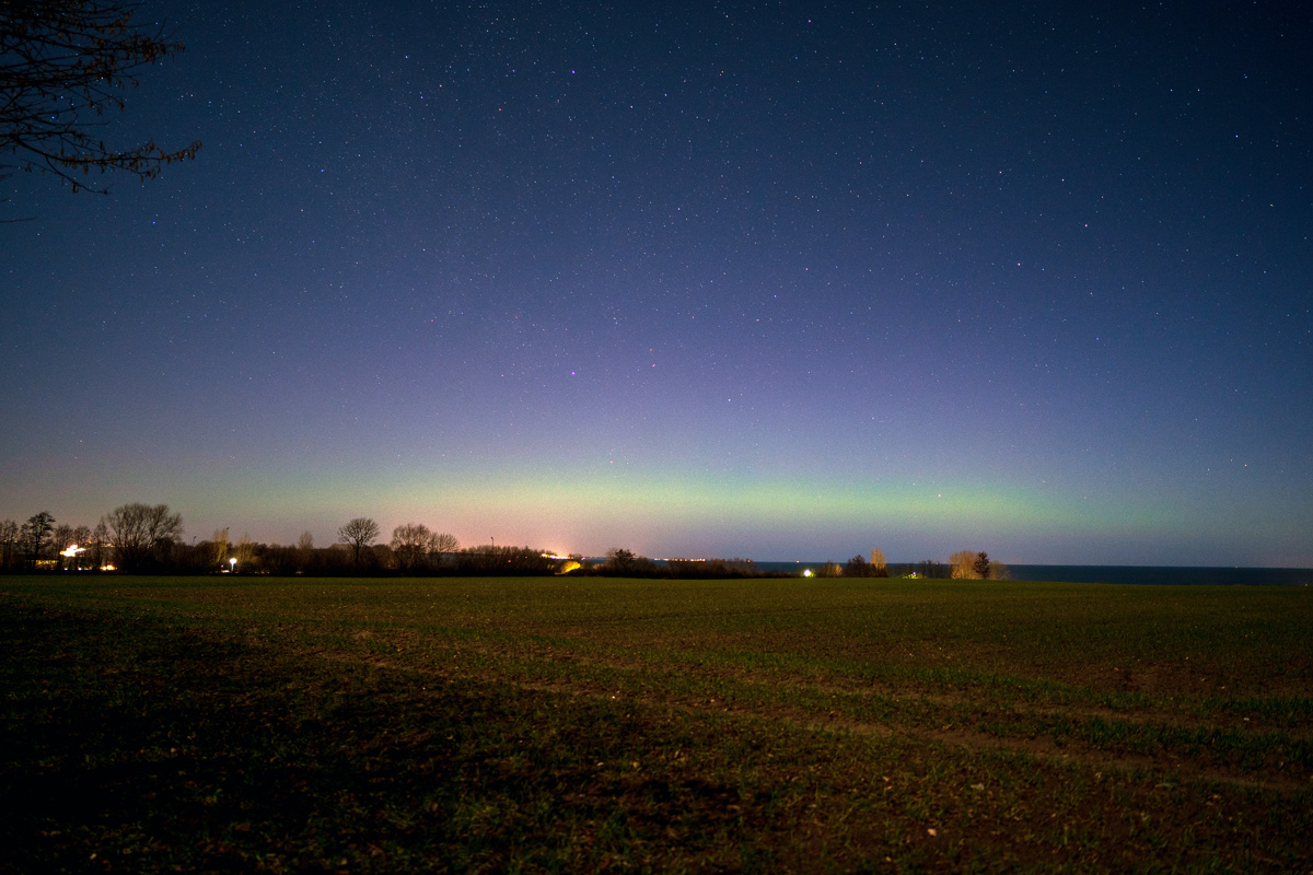 Guten Abend, aktuell ist in meinen Aufnahmen ein grüner Polarlichtbogen zu erkennen. Noch recht dicht am Horizont. Standort in der Nähe von Curau bei Lübeck.