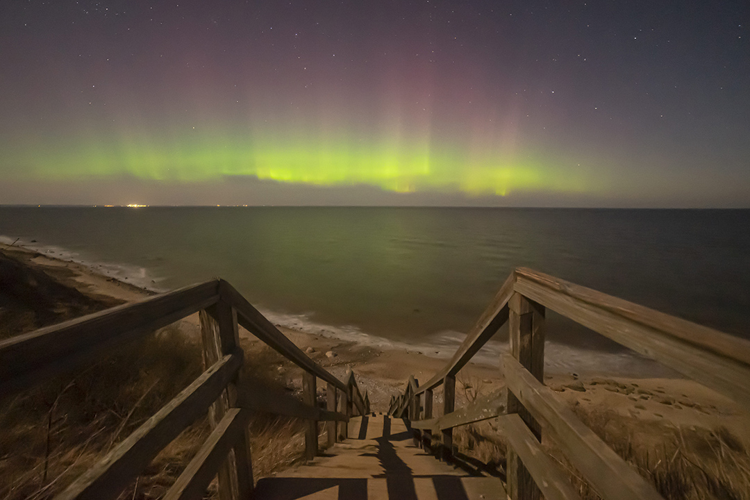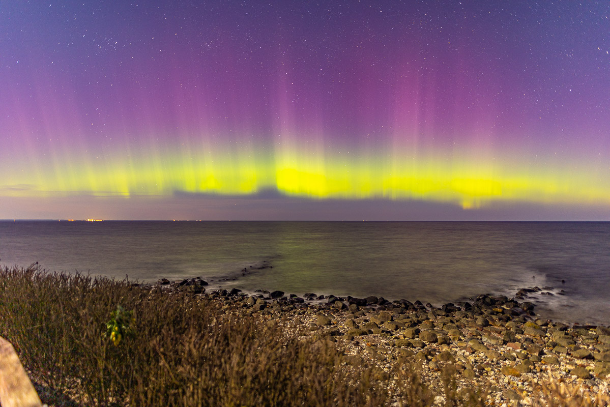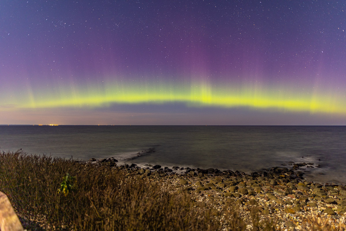 Als ich gestern in der App die Polarlicht Warnung bekam, machte ich mich am Abend direkt auf zur Steilküste in Stohl (nördlich von Kiel) und wurde nach langem Warten von diesem mega Schauspiel belohnt. Bisher konnte ich nur auf Island mal ein sehr schwaches fotografisches Polarlicht ablichten, ist also jetzt erst mein zweites Polarlicht gewesen.