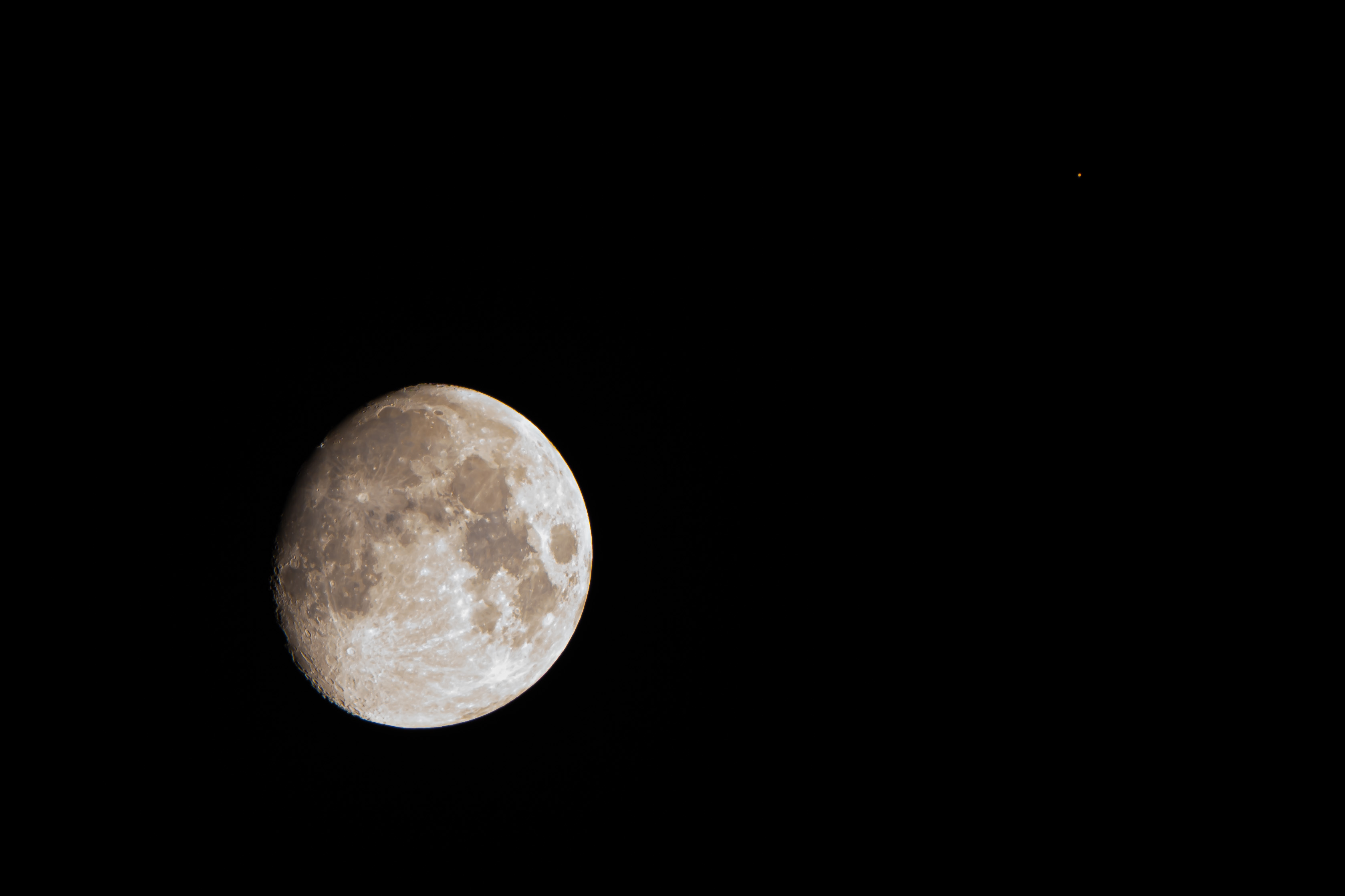 Zuhause angekommen konnte ich dann am späteren Abend um 22:30Uhr nochmal bei 600mm die Konstellation festhalten, da war der Mond natürlich schon weiter gewandert.