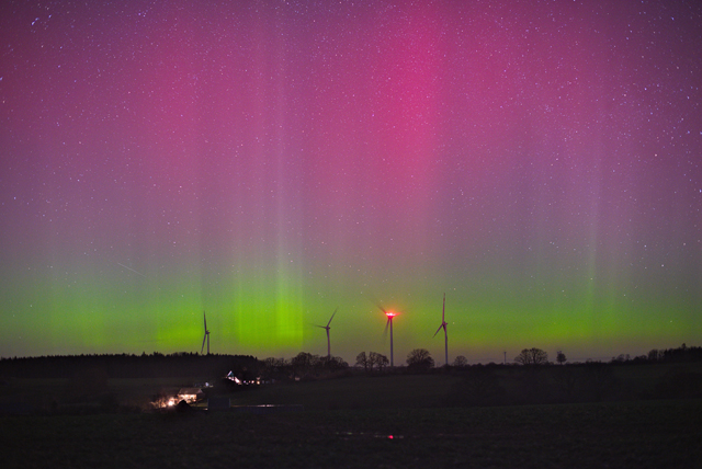 Auch in Süderlügum wieder fotografisches Polarlicht (15.03.23 23 Uhr bis 16.03.23 00.40 Uhr MEZ).