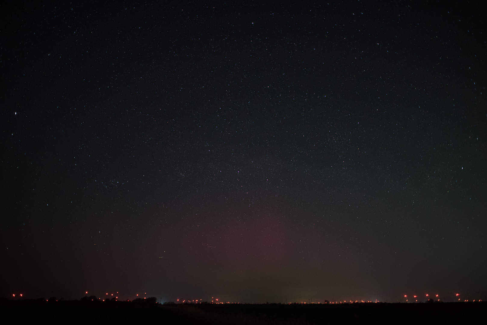 Bei der Empfindlichkeit am Canon APS-C-Sensor definitiv nicht mehr schön, aber als Nachweis sollte es allemal noch taugen. 'Musste mich erstmal anpassen an die Bedingungen eines neuen Standorts mit deutlich weniger Lichtverschmutzung nach Norden als aus den gewohnten Gefilden. Dementsprechend kann / muss dann auch länger belichtet werden. Normalerweise bin ich da ja mit halben ISOs unterwegs. Eigentlich wollte ich auch nur visuell April-Lyriden einfangen. Und das hat bei 'ner Ausbeute nah an die 20 heran auch wunderbar geklappt. Aber angesichts der ansprechenden Werte am DSCOVR und Michaels Tool habe ich die Kamera dann doch mal bodennah aufgebaut, um das herumstreunende Wild nicht zu sehr aus der Reserve zu locken. Bedingungen waren leider nicht optimal, Transparenz horizontnah ziemlich mau. Da war der Name des nächstgelegenen Dorfes Programm. Aber auch ein Stück weit zu erwarten bei den ganzen Gräben, die da in der Umgebung gezogen wurden. Das Polarlicht trat flächig rot-violett ausschließlich fotografisch in Erscheinung. Beamer konnte ich nicht nachweisen. Zu erkennen ist es auf den Aufnahmen um 00:14:38 MESZ & 00:24:51 MESZ. Alle Aufnahmen erfolgten mit denselben Einstellungen (Nachbearbeitung dito). Die letzten 3 Aufnahmen wurden nur deshalb als Serie hochgeladen, um das Polarlicht um 00:24:51 deutlich(er) zu machen.