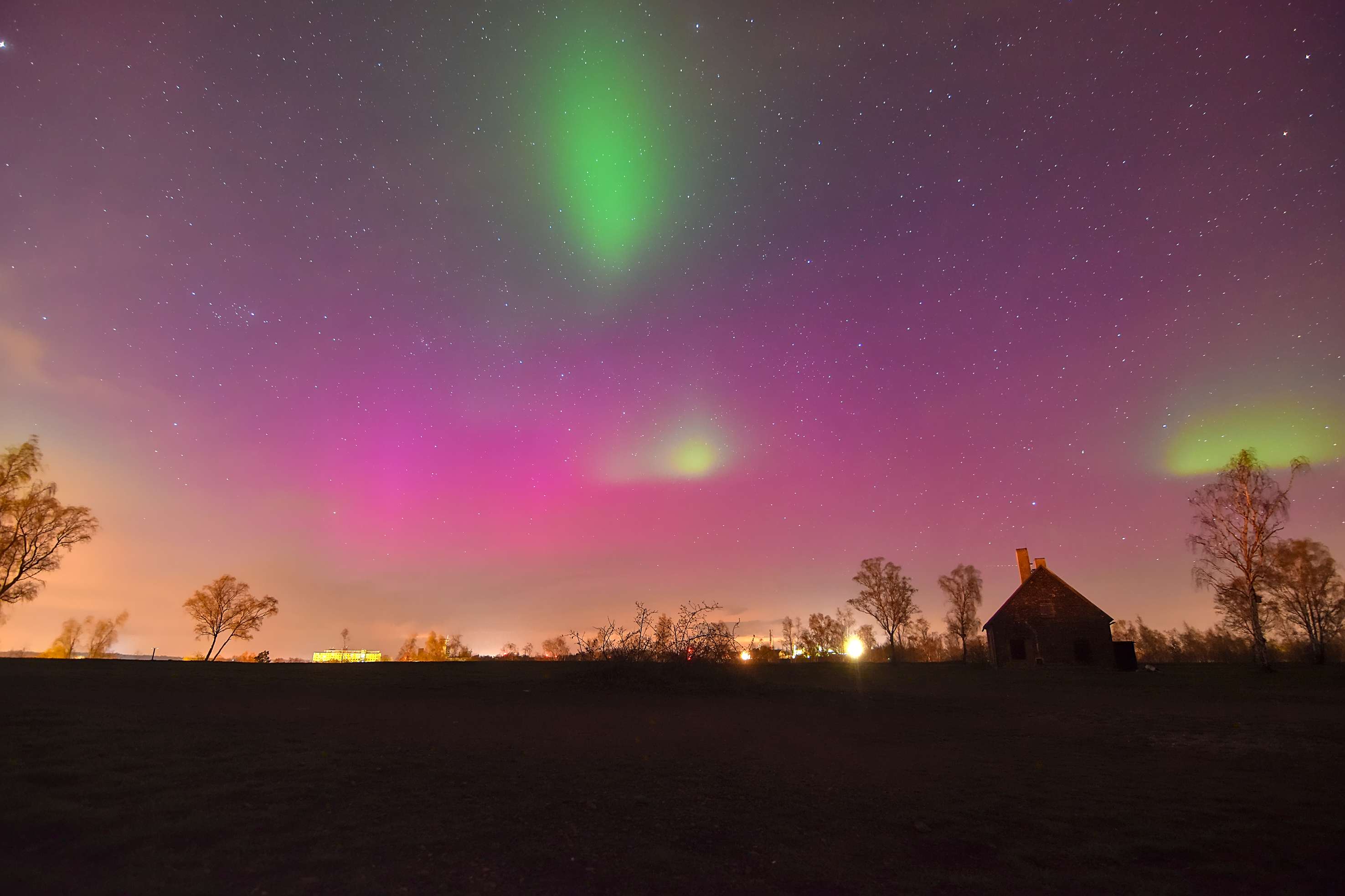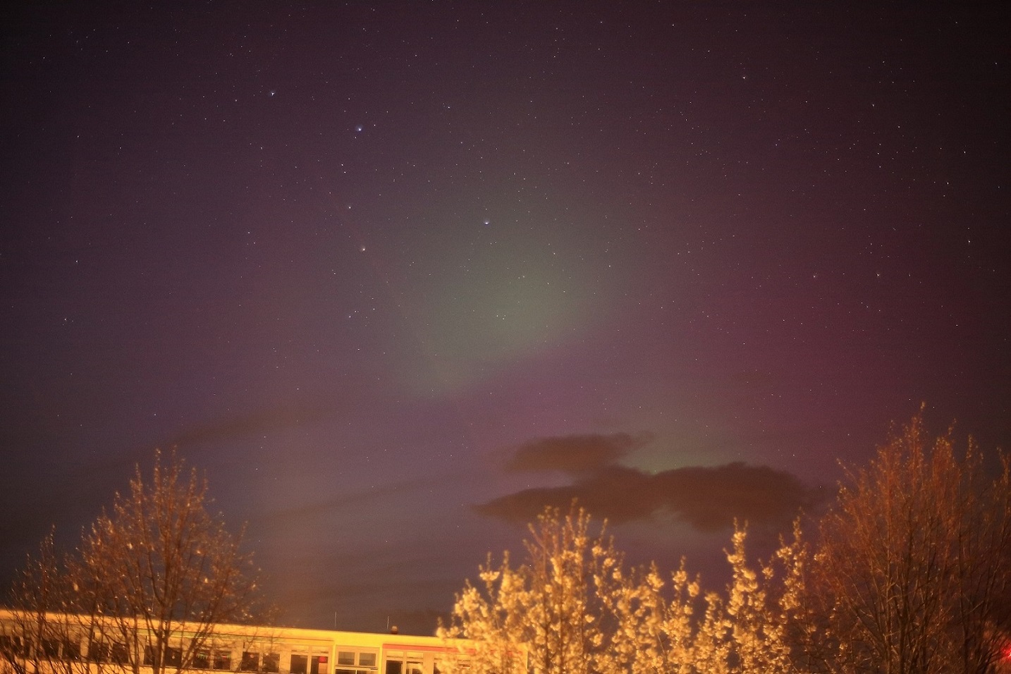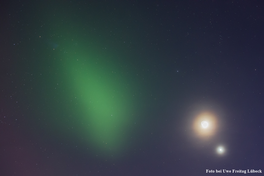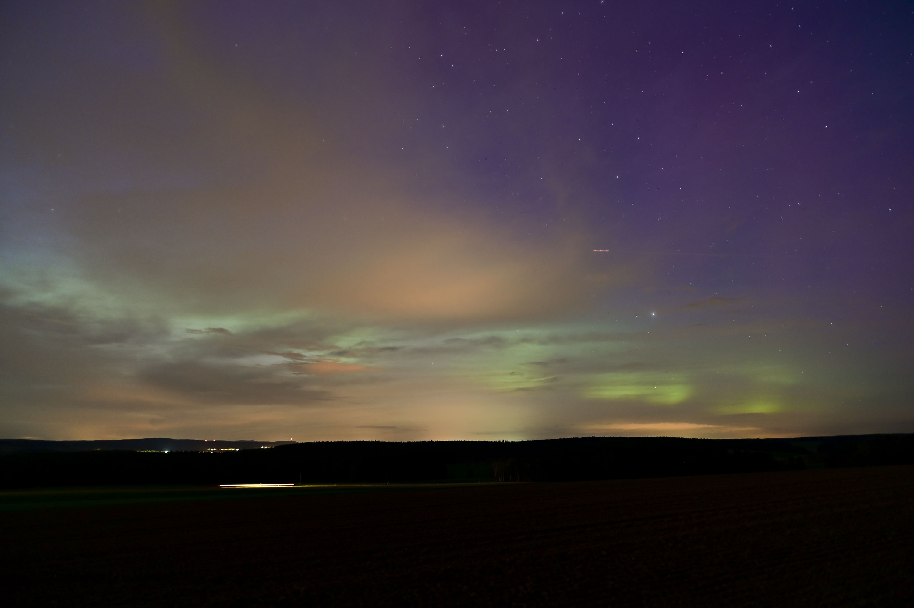 Absolut herrliche Aufnahmen! Leider war es bei uns (Augsburg, BY) sehr bewölkt und fast durchgehend grau, konnte dennoch eine leichte, aber erkennbare rot und grünliche Färbung des Himmels in einigen wenigen Wolkenlücken ausmachen (zwischen 22:30 und 22:45 Uhr Ortszeit). Durch die städtische Lage kann ich allerdings nur von der "fotografisch"en Kategorie sprechen.