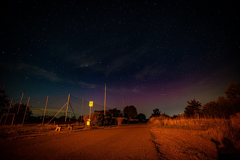 Gegen 21:20 Uhr ein erstes Foto von einem herrlich bunten Nachthimmel gemacht. Mit bloßem Auge war eine Aufhellung am Horizont zu sehen. Bis 22:20 würde die Aufhellung intensiver und zum Höhepunkt waren Beamer zu sehen, ebenso die Farben waren schwach erkennbar. Glück war, dass zum entscheidenden Moment die Wolkendecke auflockerte und abzog. In der Ferne konnte ich die Gewitterfront ebenfalls sehen.