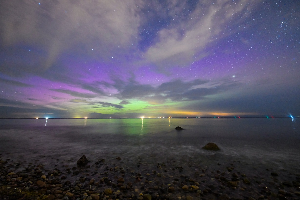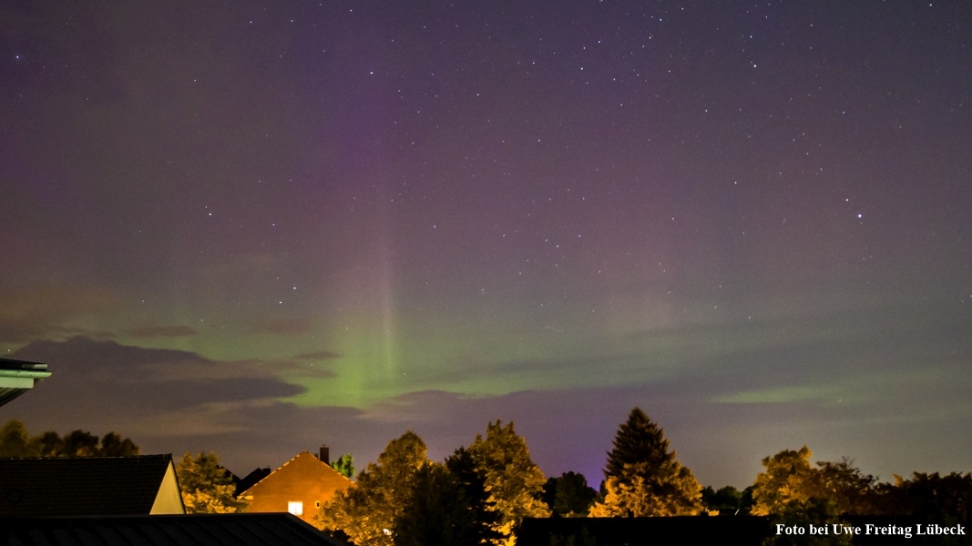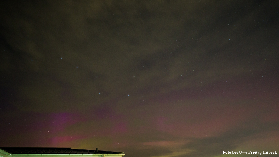 In Wilhelmshöhe bei Warnemünde war mit abziehenden Wolken ein Blick auf deutlich visuelles Polarlicht sichtbar.
