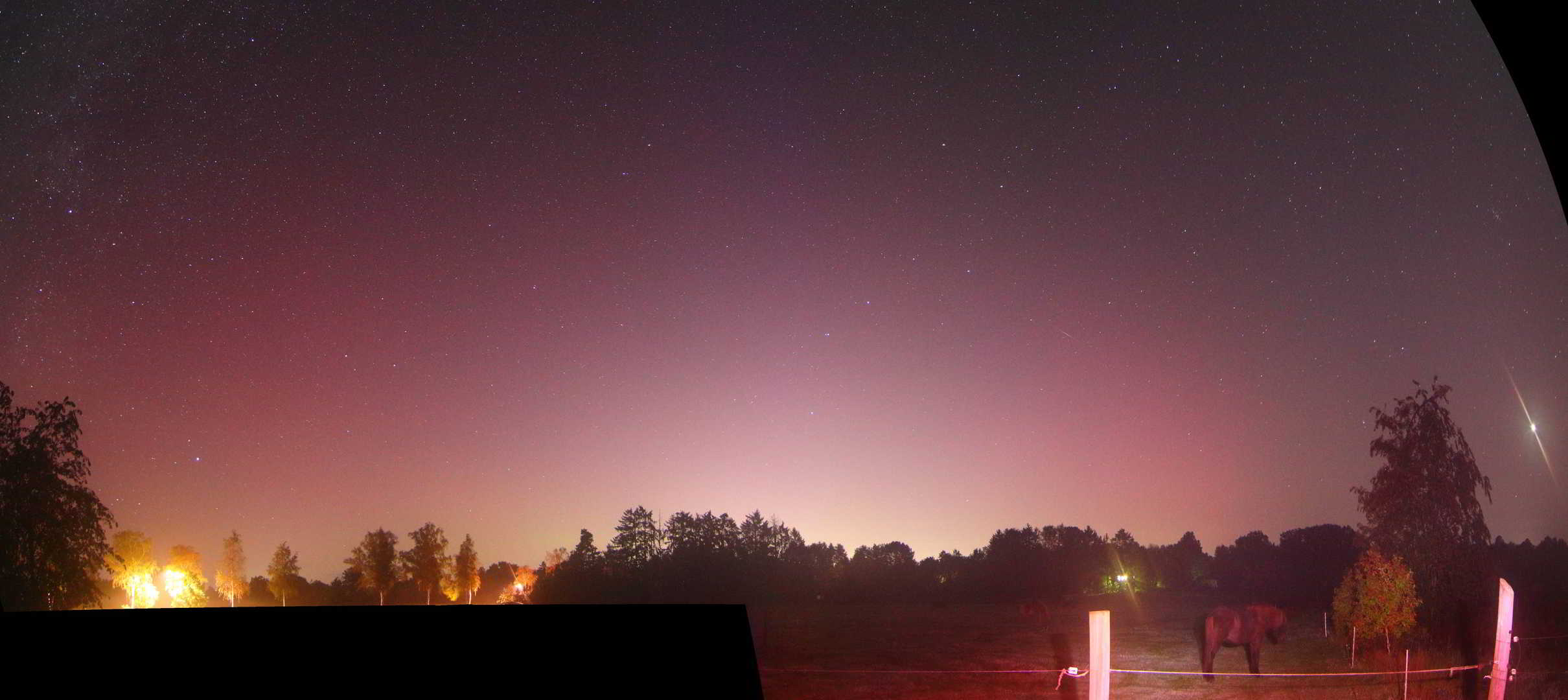 Nur wenige Augenblicke später, als die Beamer-Show mehr oder weniger vorbei war, färbten sich dann Teile des Himmels visuell richtig deutlich rot. Mein erstes visuell farbiges PL in Deutschland