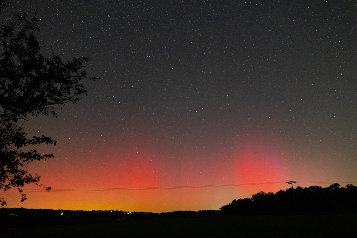 Bei uns in Telgte neben Münster (51.9 N in NRW) waren SEHR helle Rote und Grüne Polarlichter zu sehen. Konnte 3 Phasen erkennen die alle Deutlich visuell waren und in den Phasen mit riesigen roten Beamern immer wieder aufleuchteten. Der Himmel war zumindest hier nahezu die 5 Stunden die ich draußen war in rot zu sehen. Hab um die 200 Fotos gemacht die ich später noch auf meinen PC packen muss.