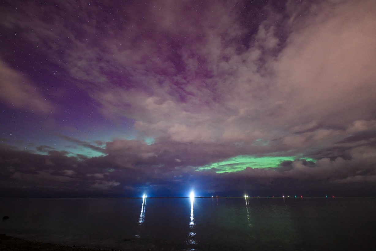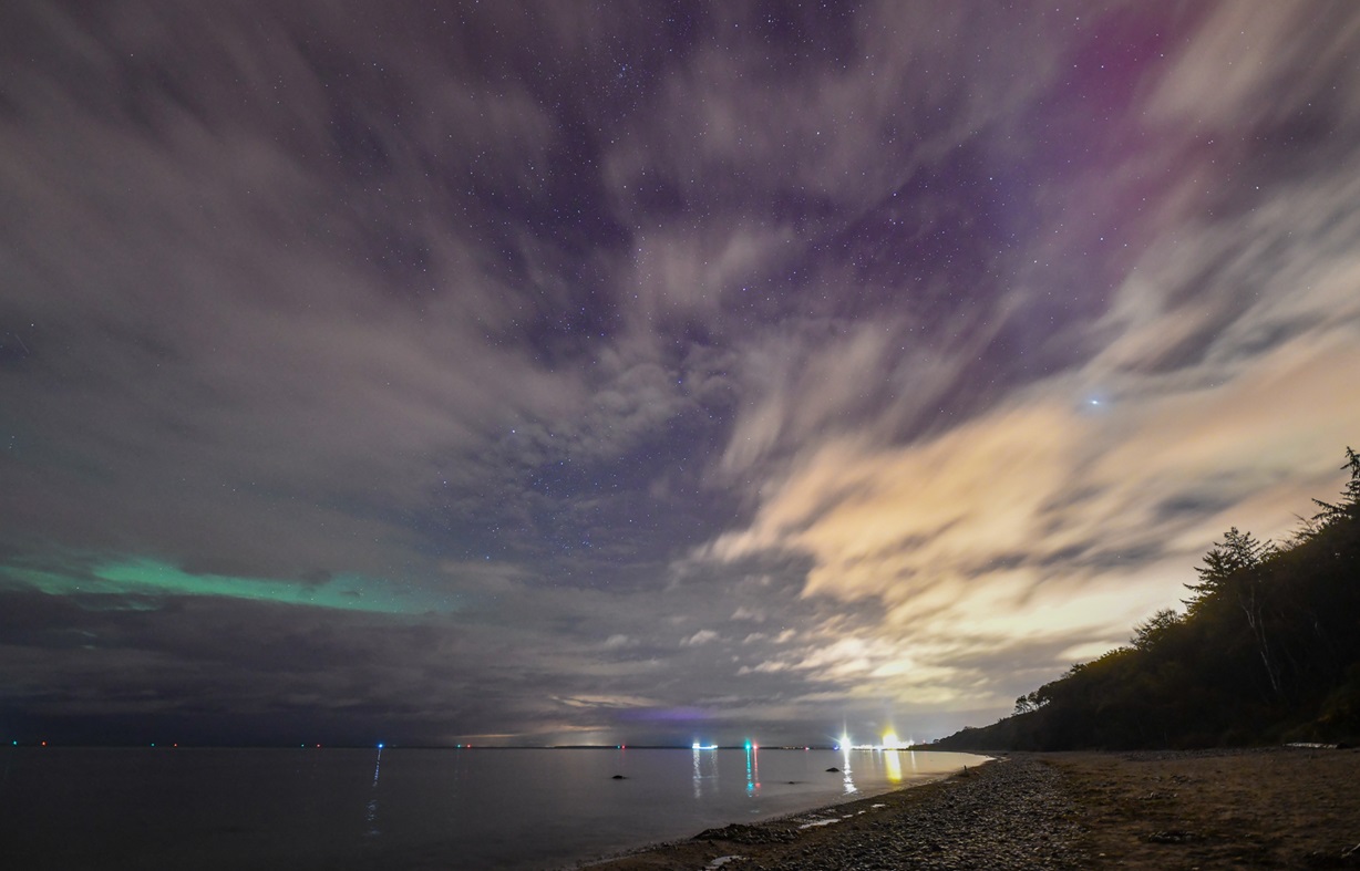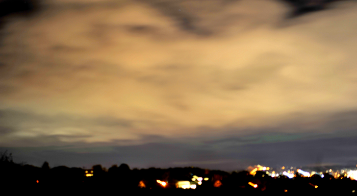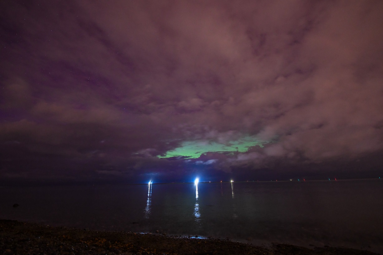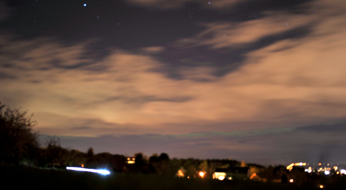 Wenig später zeigte sich nach Norden hin eine Wolkenlücke, in dem das Polarlicht leicht hindurchschimmerte.