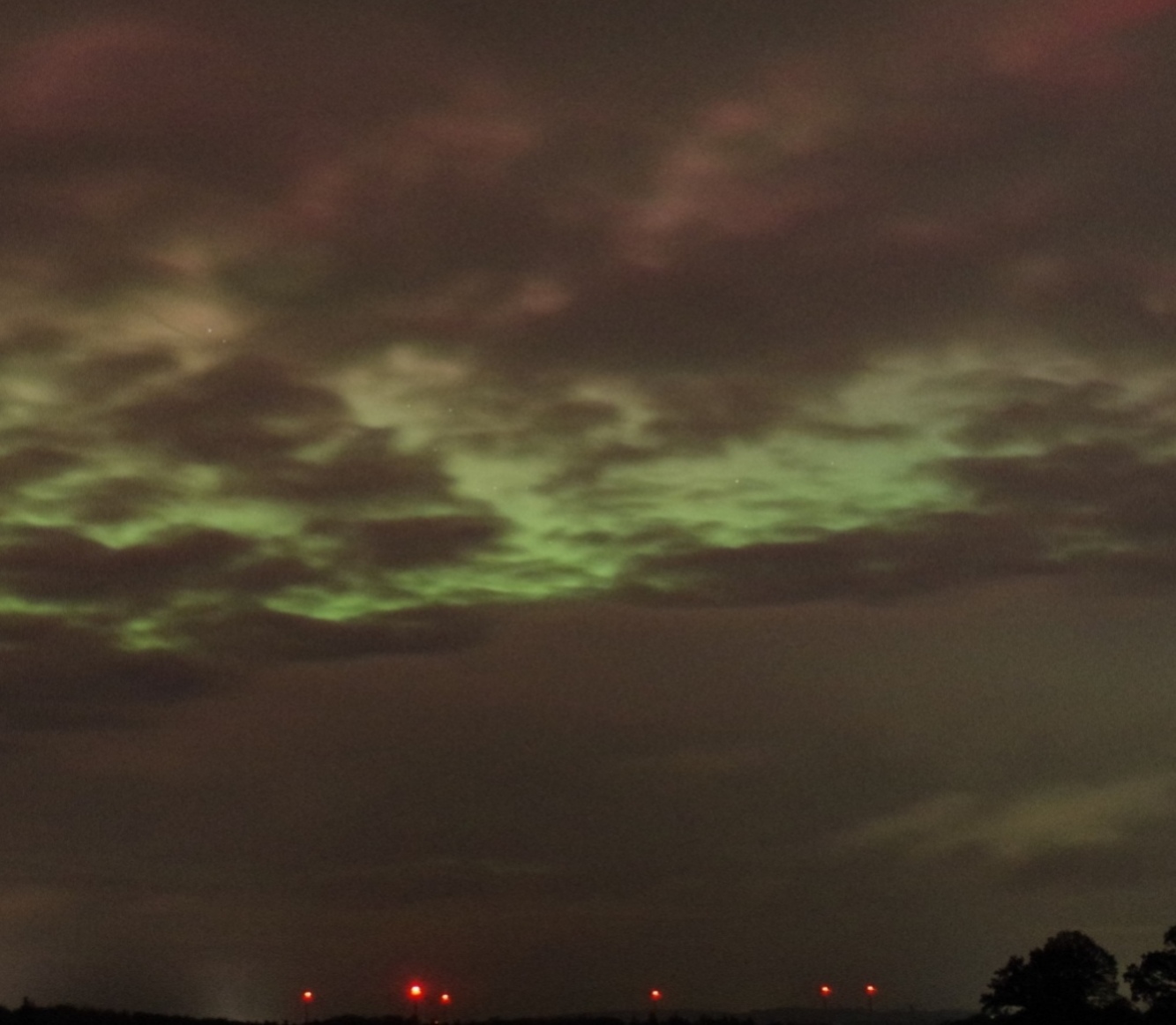 Es handelt sich dabei um ein schwach visuelles Polarlicht. Die Bögen waren leider nicht offensichtlich zu sehen.
