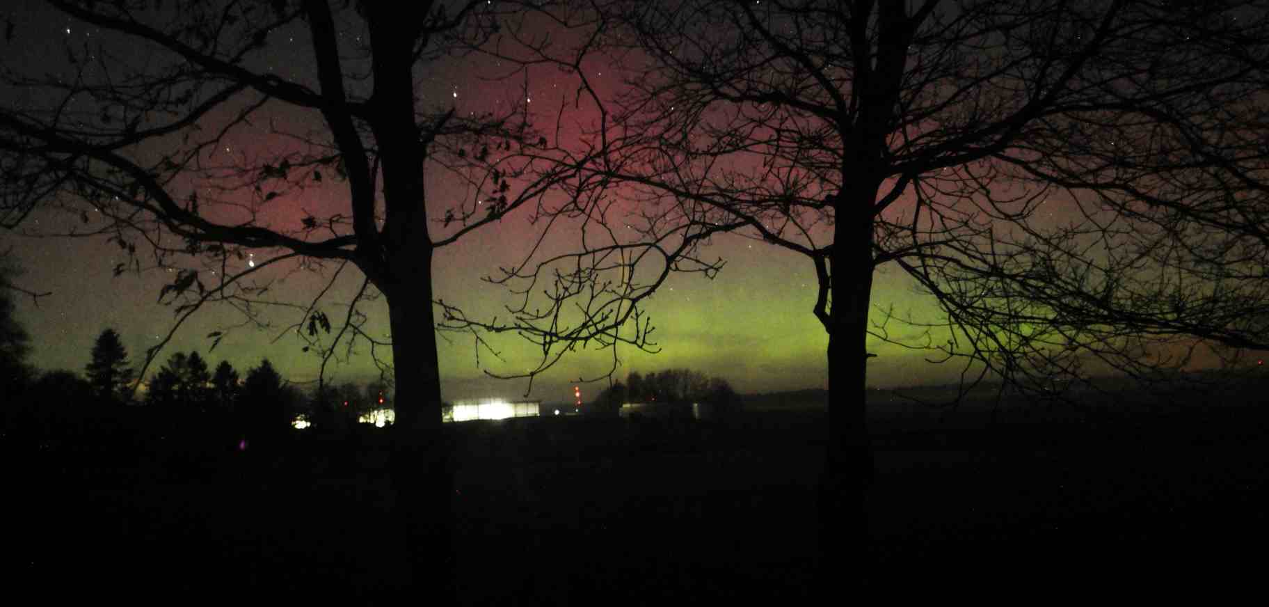 Leider habe ich genau in der Richtung einen, auch nachts beleuchteten Kuhstall. Dennoch konnte man das Polarlicht für etwa 3 Minuten relativ deutlich erkennen.