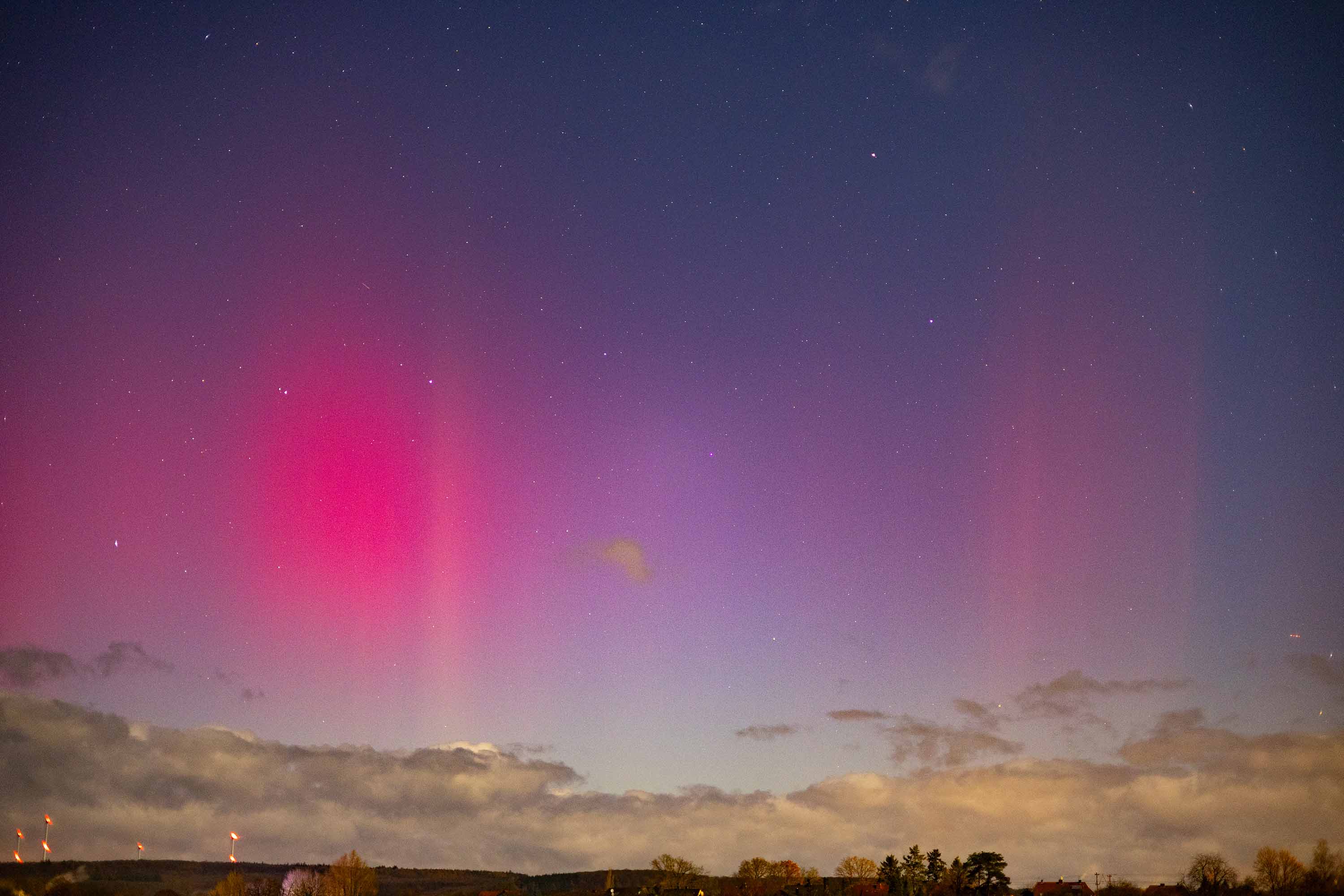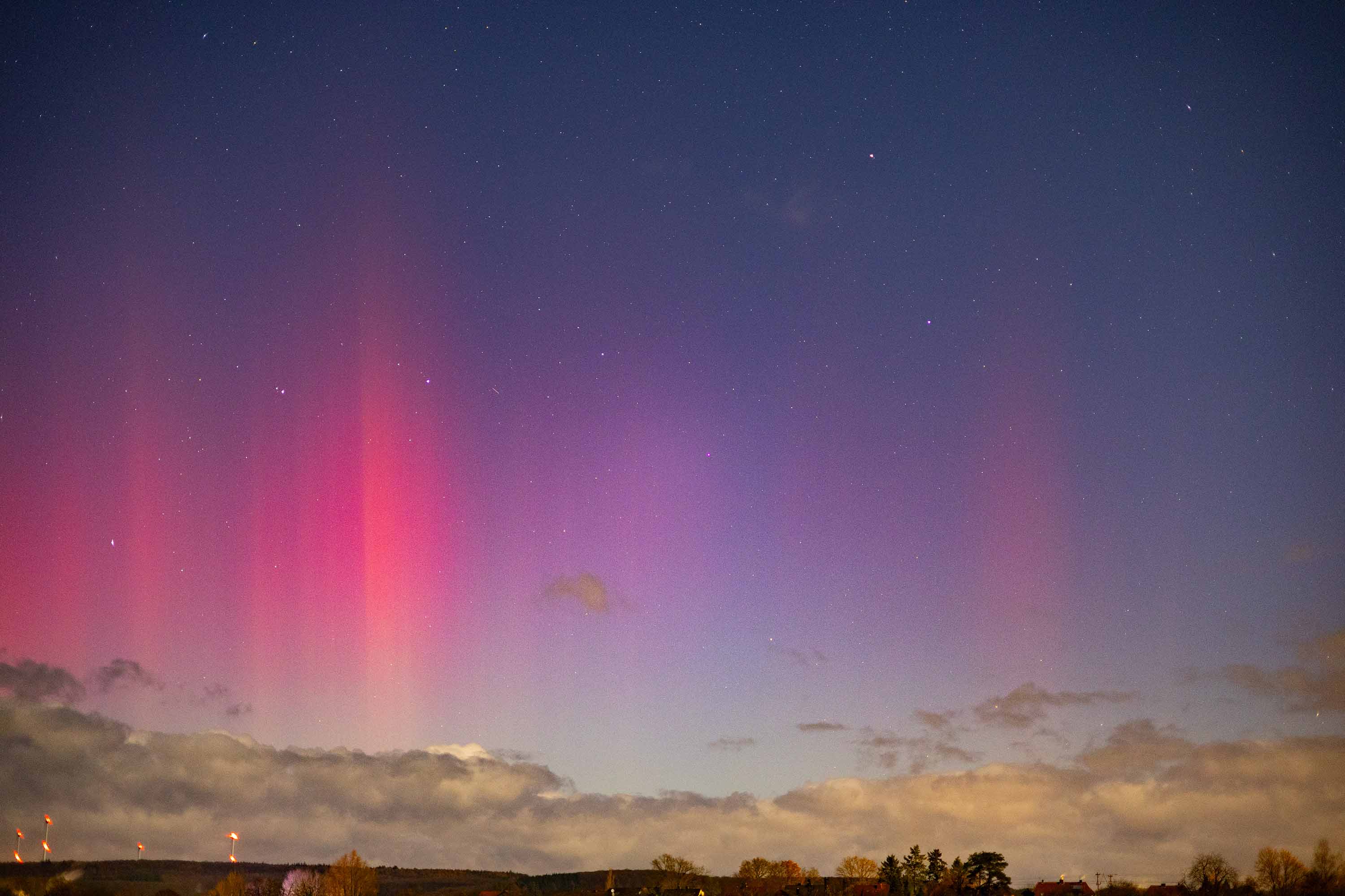 Dies war auch das erste Mal das ich hier in Deutschland, Polarlicht mit dem Auge sehen konnte . Der ganze Himmel wurde aufeinmal Rot und die Beamer stiegen in den Himmel .