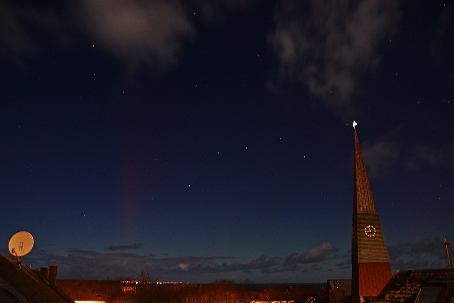 Markant bei diesem zweiten Substorm: Die Polarlichtstrahlen in NNO (unten grün, oben rot), welche langsam, deutlich visuell und in Farbe, irgendwie an Ort und Stelle durcheinander "tanzten":