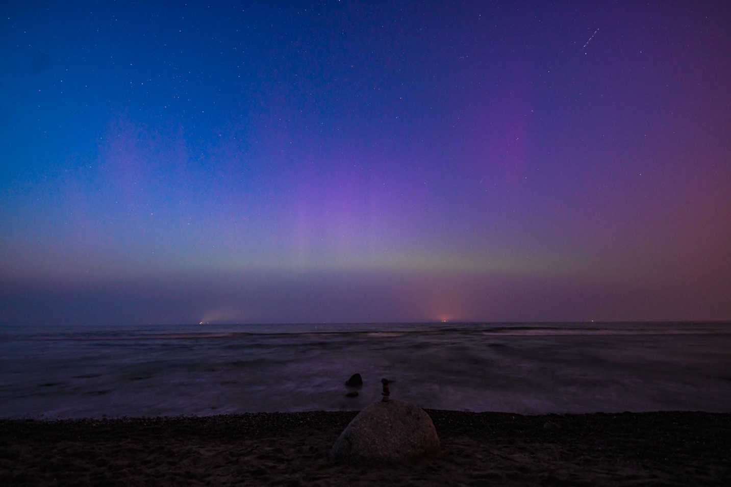 anbei meine Sichtung: Das erste Mal Polarlicht konnte ich noch in der Abenddämmerung nachweisen. Sichtbar war ein grüner Bogen, darüber leichtes rotes Glimmen: