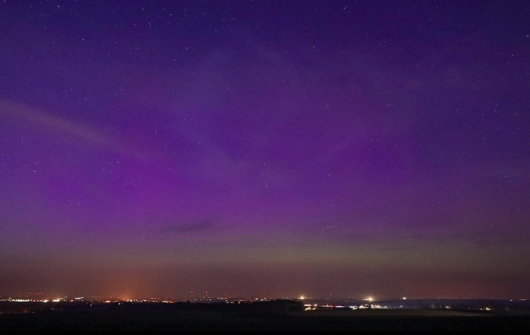 Wir haben gegen 19.05 Uhr UTC in Mittelsachsen (09326 Geringswalde) Polarlicht fotografieren können und auch schwach visuell gesehen. Man konnte einen leicht milchig-grünlichen Bogen über den Dunst erkennen.