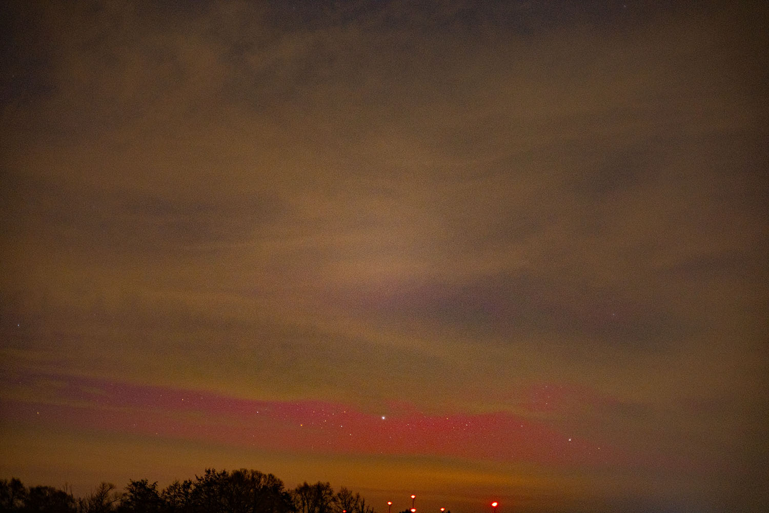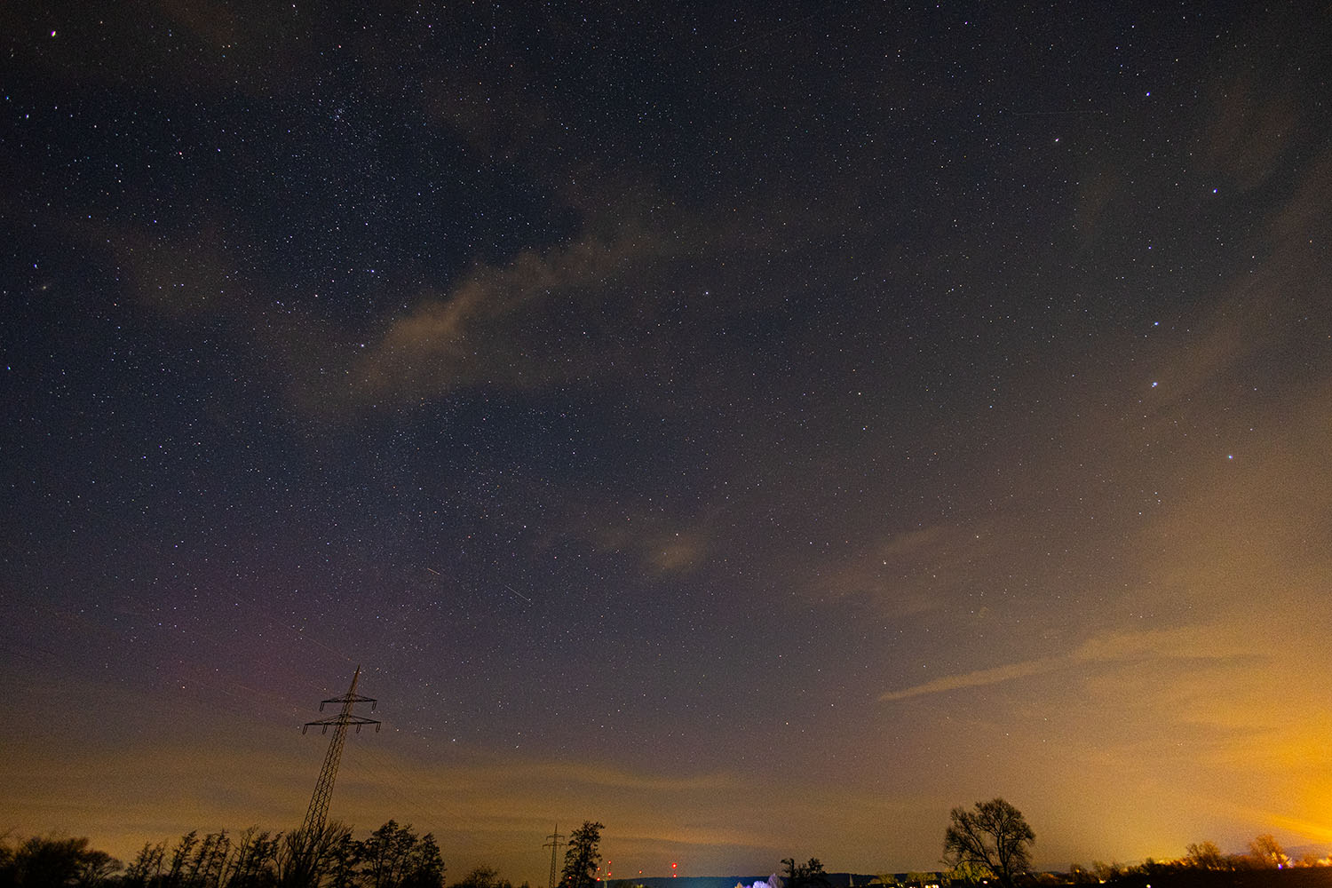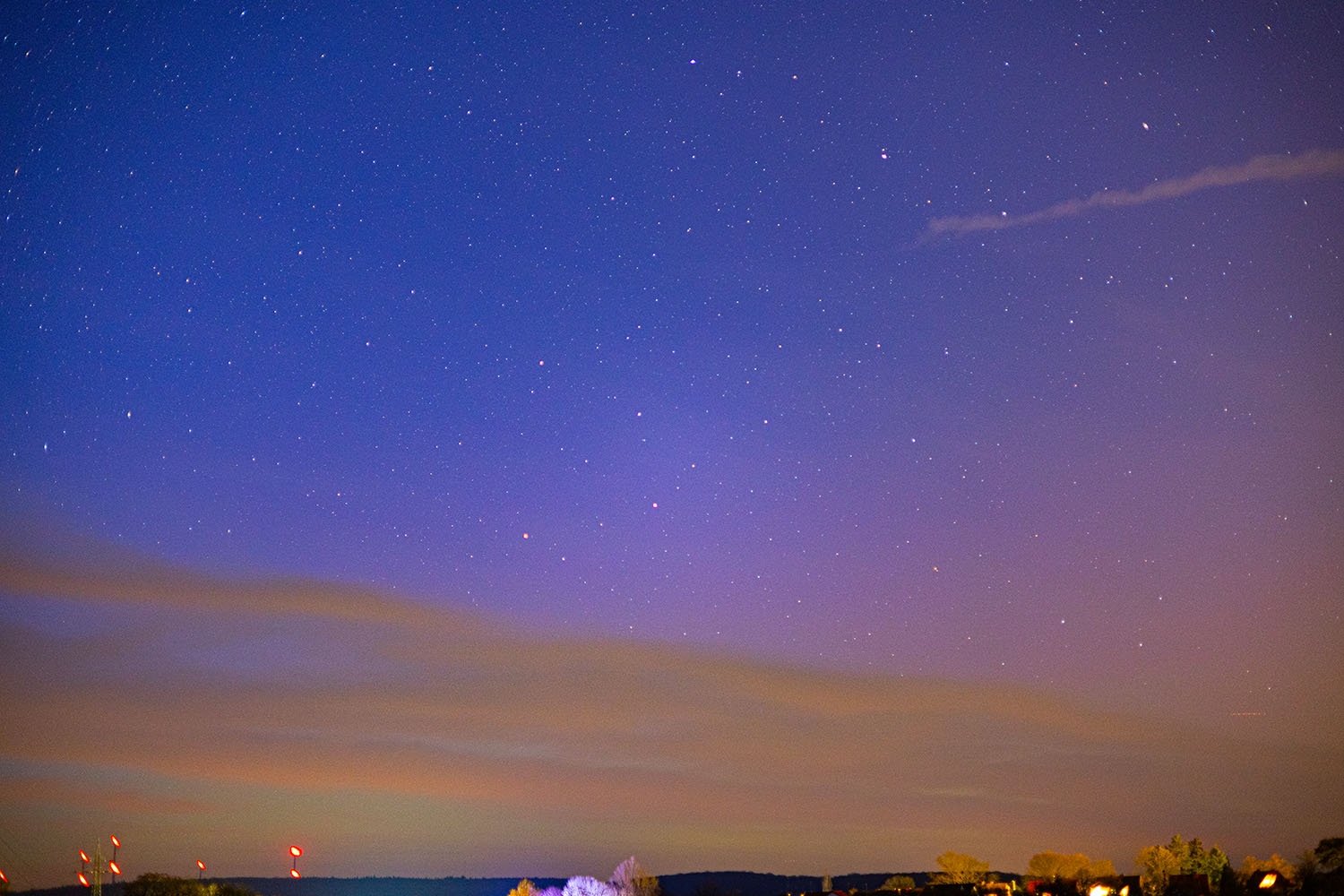 Die Strahlen waren schwach visuell erkennbar (trotz Lichtverschmutzung), man konnte sogar das Rot erahnen. Hier nochmal mit 50mm aufgenommen: