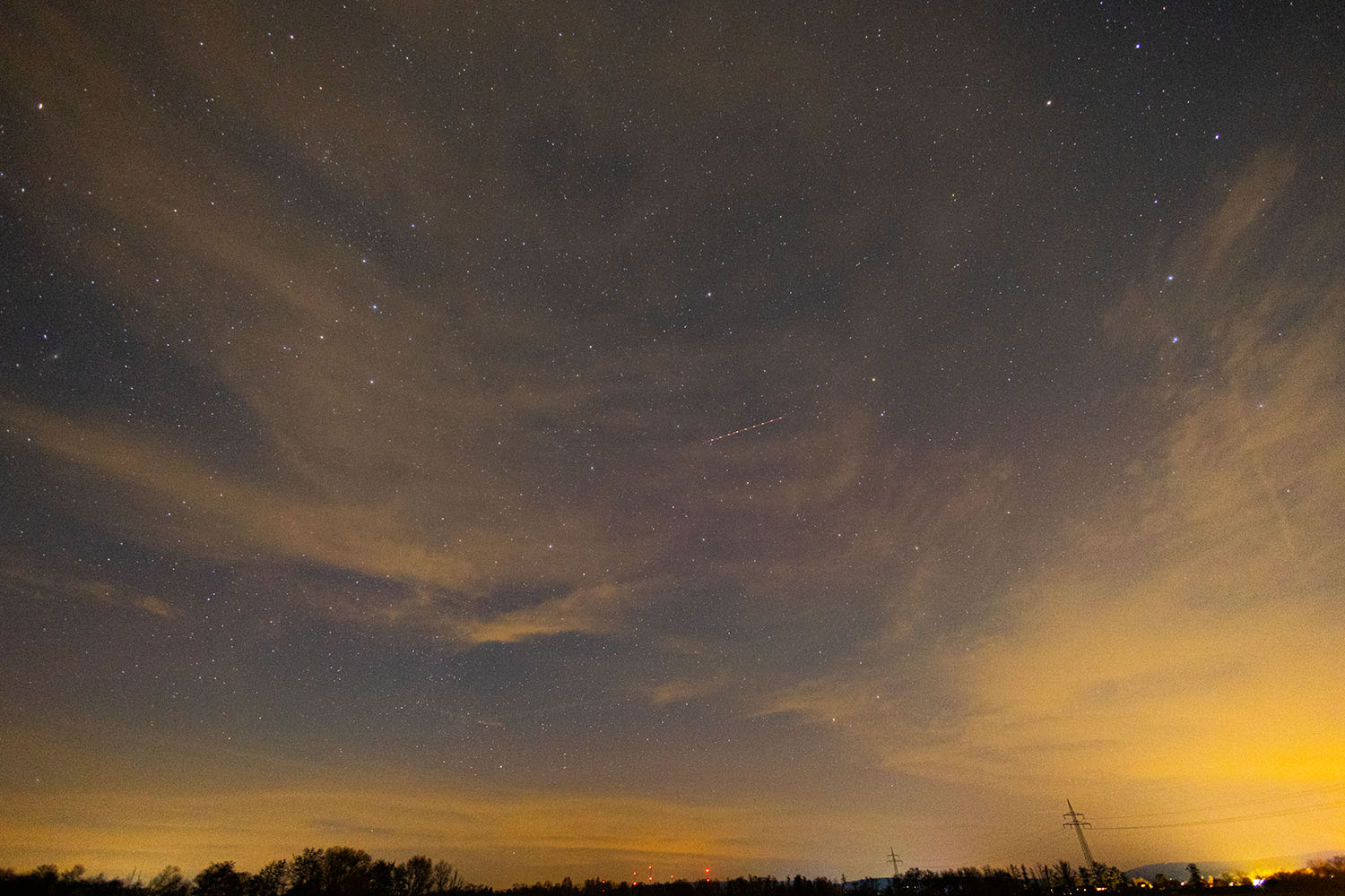 Hier kann man bereits erkennen, dass Lichtverschmutzung und hohes Gewölk die Sicht behinderten. Später nahm die Bewölkung noch weiter zu, dennoch konnte ich bei der aktiven Phase was aufnehmen:
